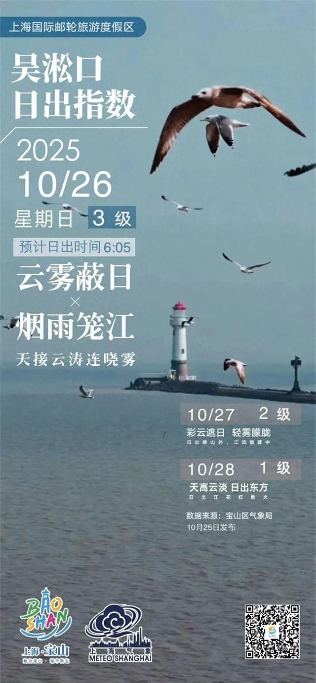 [吴淞口日出指数]10月26日3级云雾蔽日×烟雨笼江