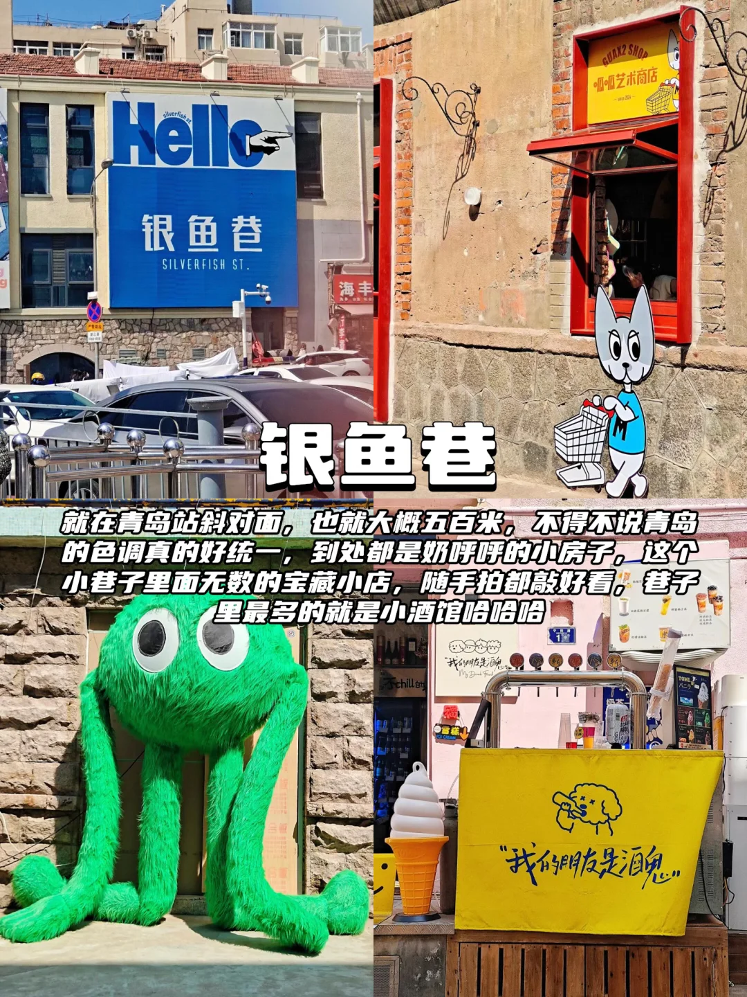 ✅第一站:银鱼巷📍距离青岛站只有500m,步行6分钟直达,里面有各种小店,甜品、咖啡、西餐、韩餐、潮流服饰……