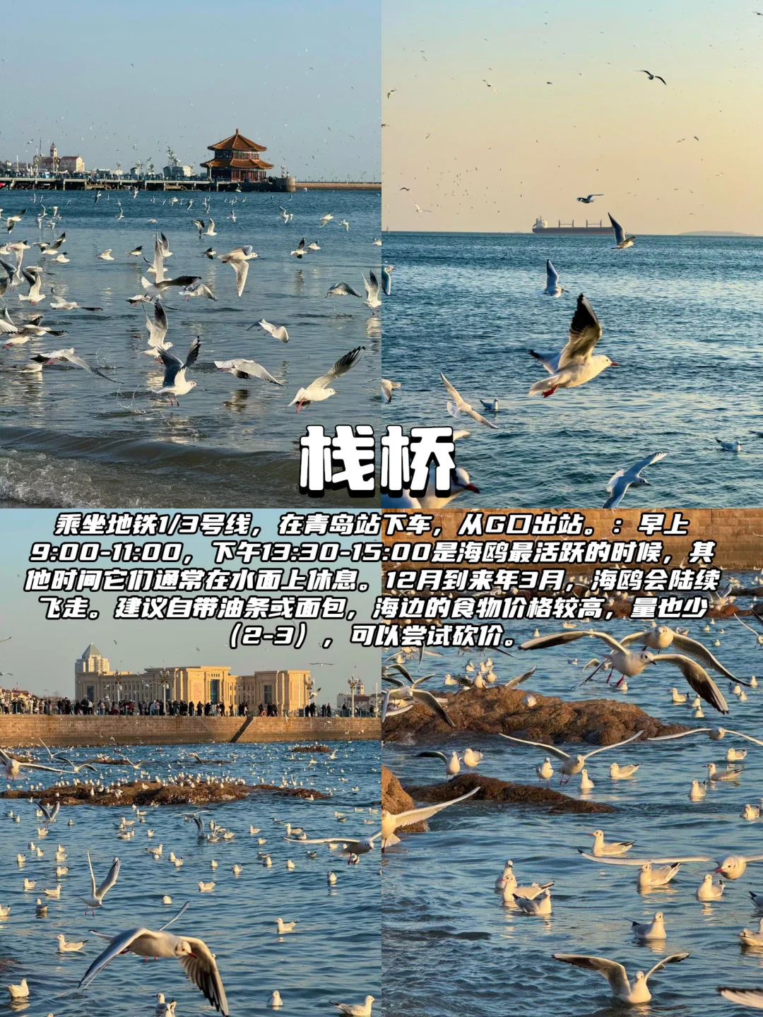 ✅第五站:栈桥📍天气凉快下来的时候,围着栈桥转了一圈,看了落日,尊嘟好有氛围感。好多的海鸥呀~