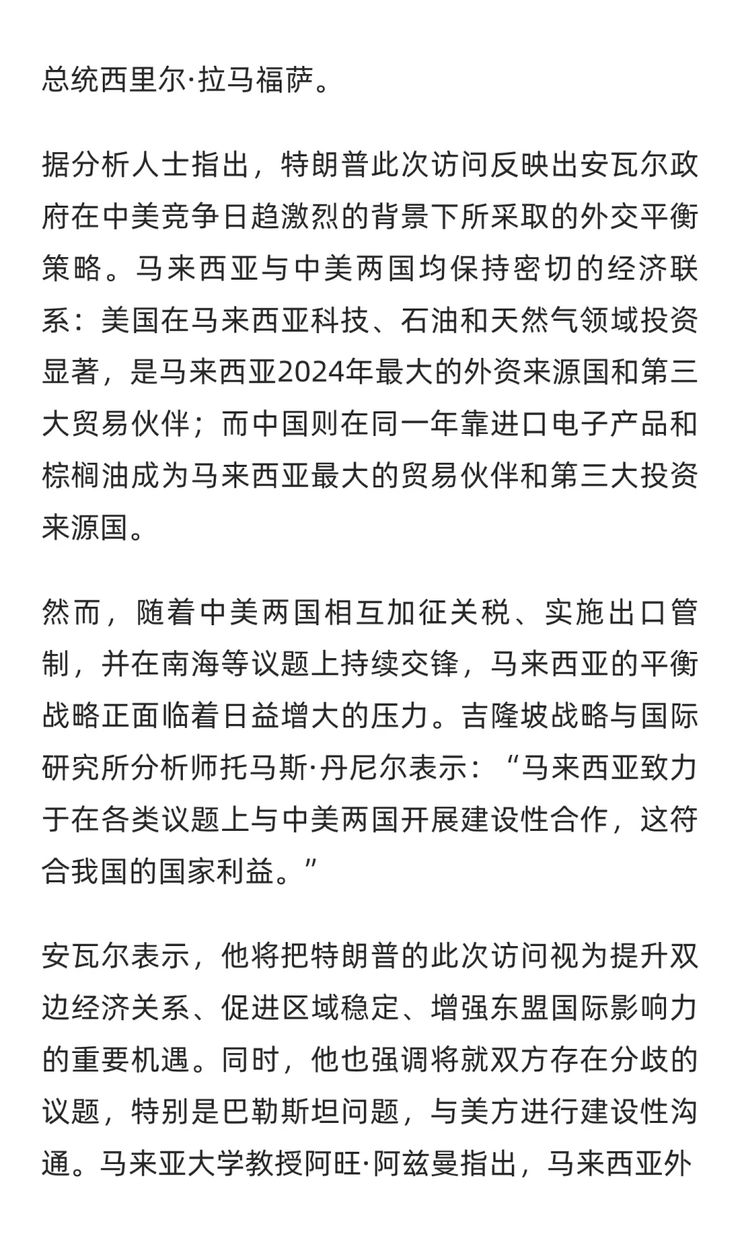 特朗普访问马来西亚,安瓦尔施展平衡外交
