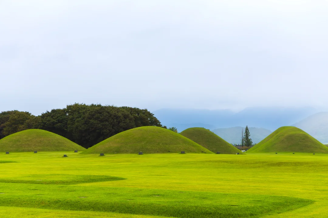 大陵苑是庆州市中心的新罗王朝王族与贵族的墓葬群,总面积约12万坪。园区内现存23座巨大的古坟,如果加上尚未发掘的地下墓葬,总数超过200个 。
