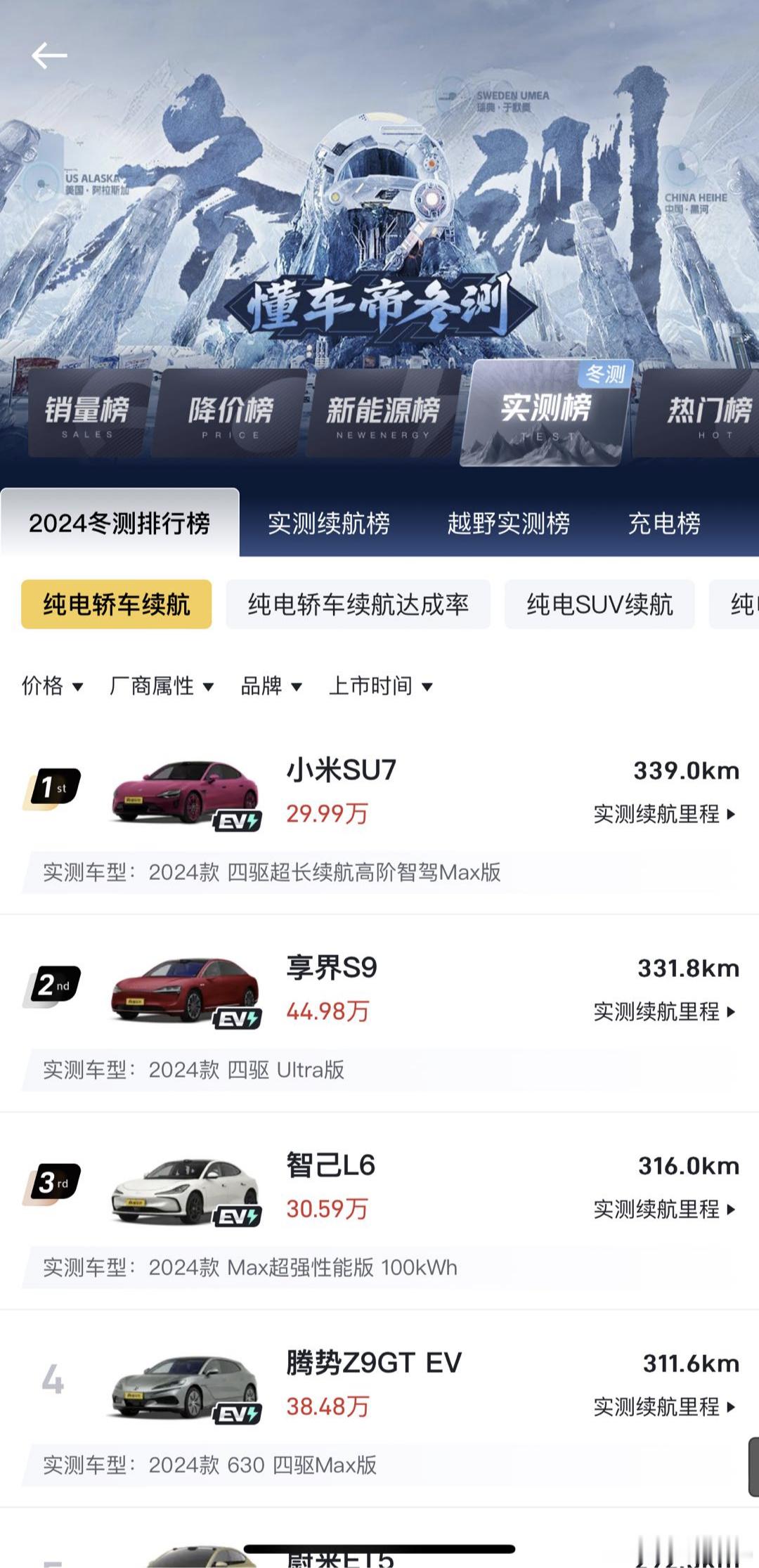 冬天到了,相信许多开新能源车的北方小伙伴都会担心电池续航问题,而YU7在冬季续航测试中再创佳绩,北京10℃低温环境下以687公里续航、领先第二名100公里的成绩,斩获续航里程与达成率双第一,延续SU7的冬季霸主地位,其出色表现源于三电技术优势与大电池容量,测试中甚至出现其他车辆已结束,YU7仍在行驶的场景,硬核实力得到大家的认可。