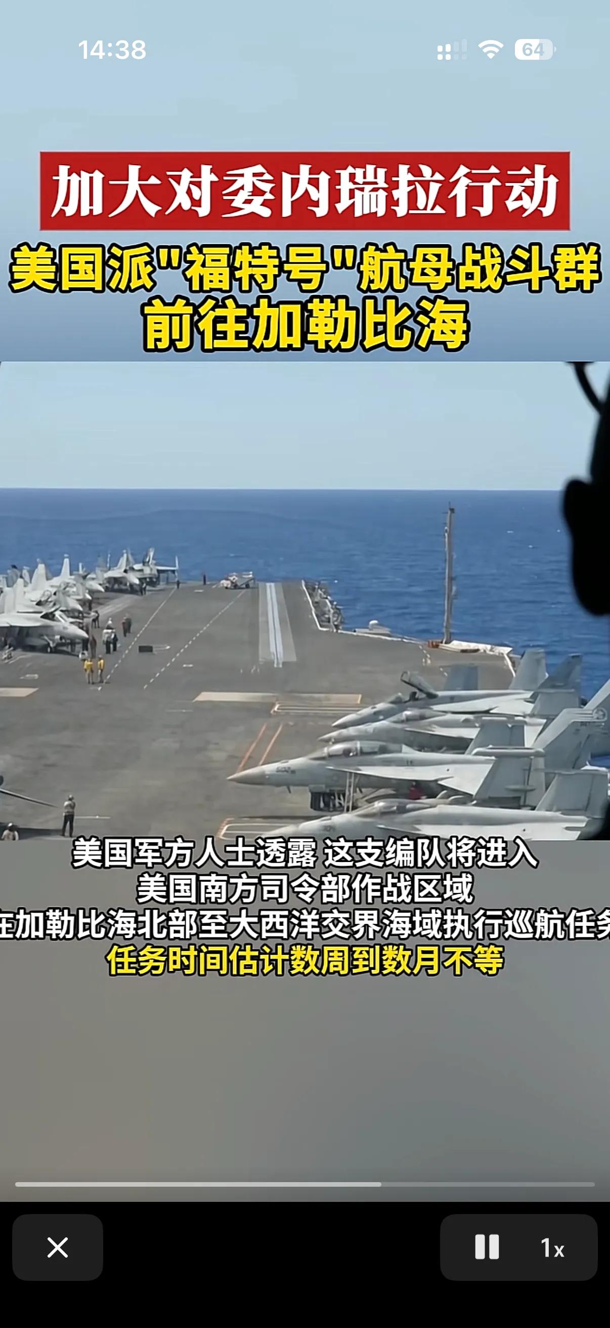 我从来没想到,有一天打击贩毒分子需要到出动航母战斗群! 哪怕事小型的航母战斗群,我依然觉得不可思议! 日前,特朗普下令美国的一艘航母向委内瑞拉所在的加勒比海移动,要知道 福特号航母群不是美国最大的航母群,但是绝对是美国海军现役最先进的核动力航母! 你说它是被派去打世界战争的我都信,但是你说出动这么一艘先进的航母战斗群只是为了打击贩毒分子,换了谁都不相信吧! 这也难怪现在拉美四个国家空前的团结!毕竟都害怕特朗普打完委内瑞拉顺道把剩下的其他几个国家也给收拾了,毕竟国家战斗力相差太大! 日前委内瑞拉领导人发表演讲时称,自己国家要的是和平不要战争,但是也不惧怕战争!