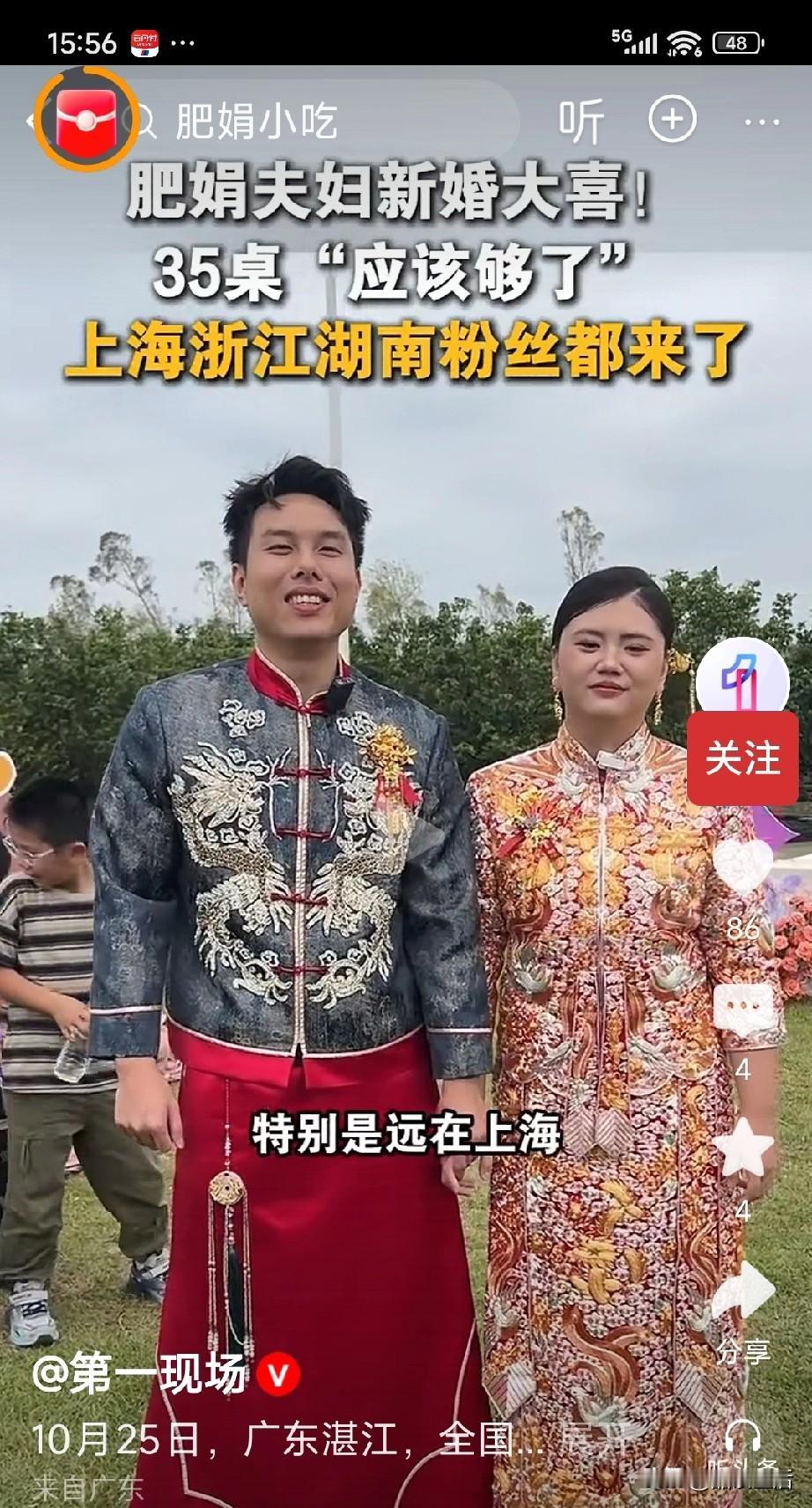 肥娟夫妇还是“商业化”了,结婚十几年,女儿都上3年级了,今天补办婚礼,请了35桌,上海浙江粉丝都有来,只是给小朋友们发了糖果,没让他们来! 看得出来他们俩人很高兴,当然有摄影师全程跟拍! 据说当时领结婚证时,很穷,没有办婚礼,肥公给“肥娟”送的200元的戒指,她都带了好久! 自从9月份,重装以后除了1元火鸡面,2元炸薯条,还有许多牛奶,和小零食,现在收入也不错。 还收获了“小孩哥”们的好评! 希望他们越过越好
