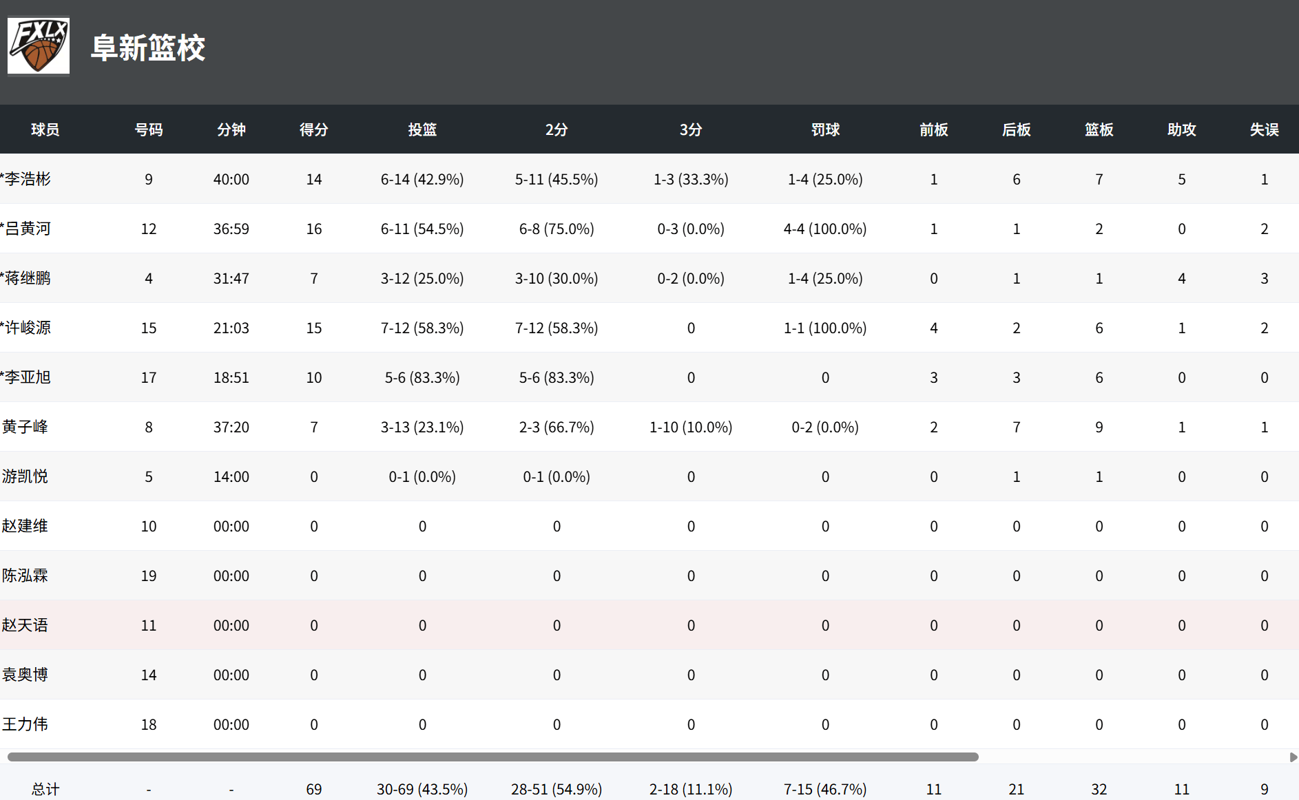 阜新篮校:吕黄河16分、许峻源15分、李浩彬14分