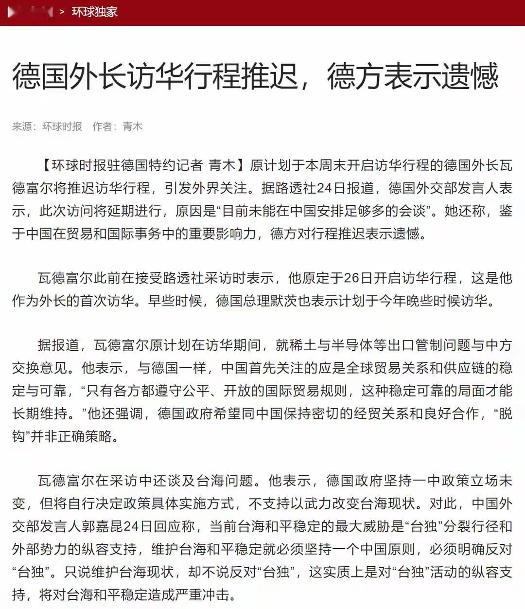 德国外长推迟访华,因为会面级别问题 这个德国外长啊,来人家前就开始提要求,又是稀土,又是台海,多么的傲慢无礼,哪有来人家做客前先摆谱的,不拒绝你来也就罢了,你还闹上情绪了,觉得见不到比自己级别高的,直接宣布不来了 偌大个外长,闹起了孩子脾气,不依着我我就不去了