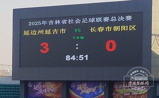 最终,裁判吹响了全场结束的哨音,延吉市队以3比0的比分赢得比赛,夺得2025年吉林省社会足球联赛总冠军。