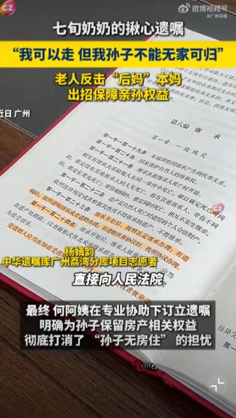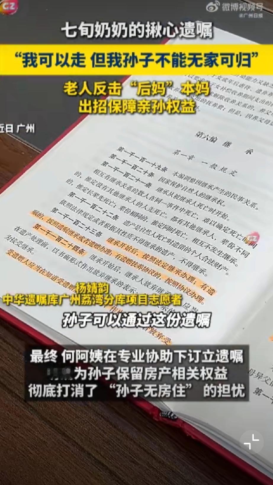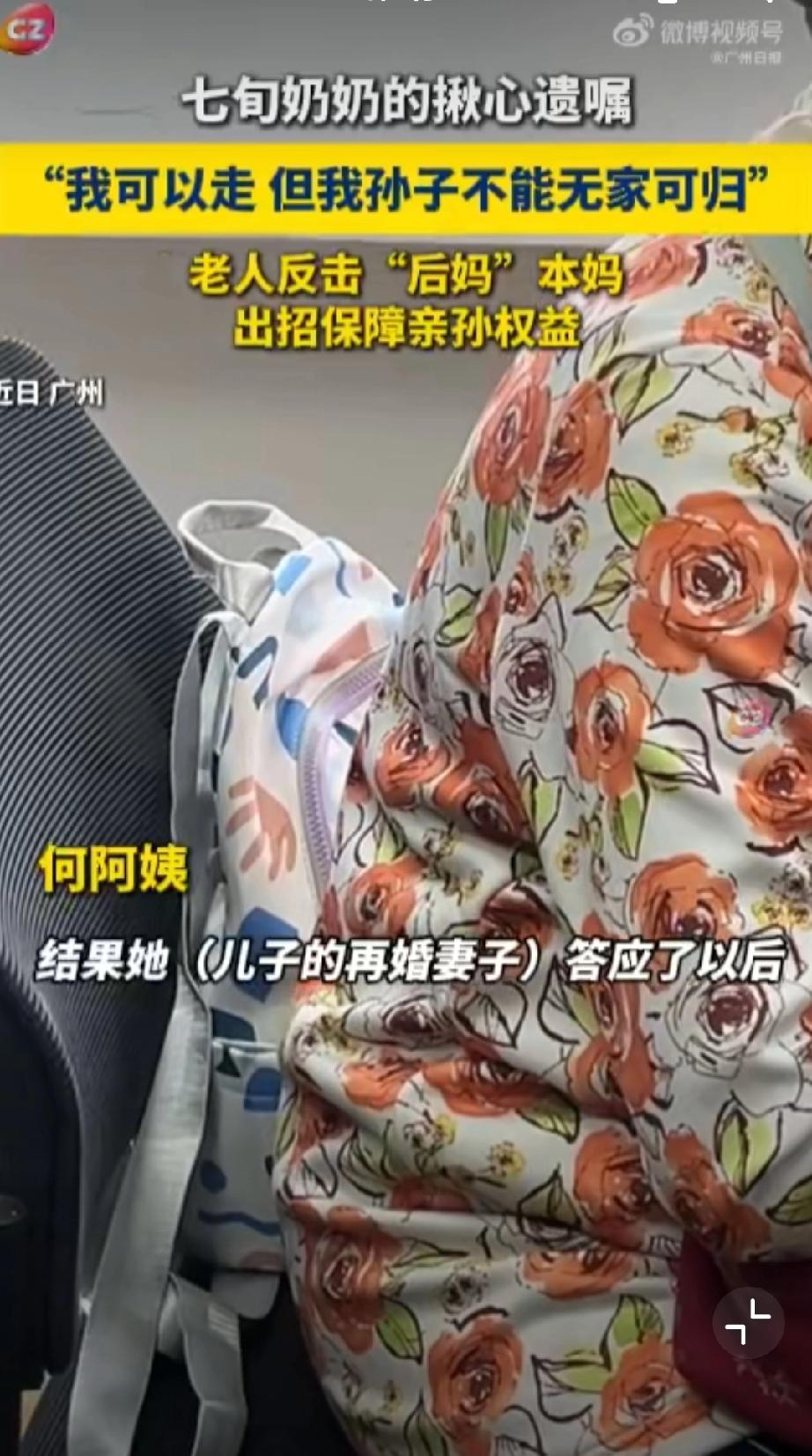 孙子遭继母打骂奶奶房产传孙不传儿。 这婆婆人间清醒啊!要留给孙子,再不济儿子离婚了也能住。要是留给儿子,万一再离婚,财产被分走,孙子和儿子都可能没地方去。婆婆想得真周到,隔辈亲的智慧绝了! 孙子的奶奶 奶奶行为 气愤奶奶