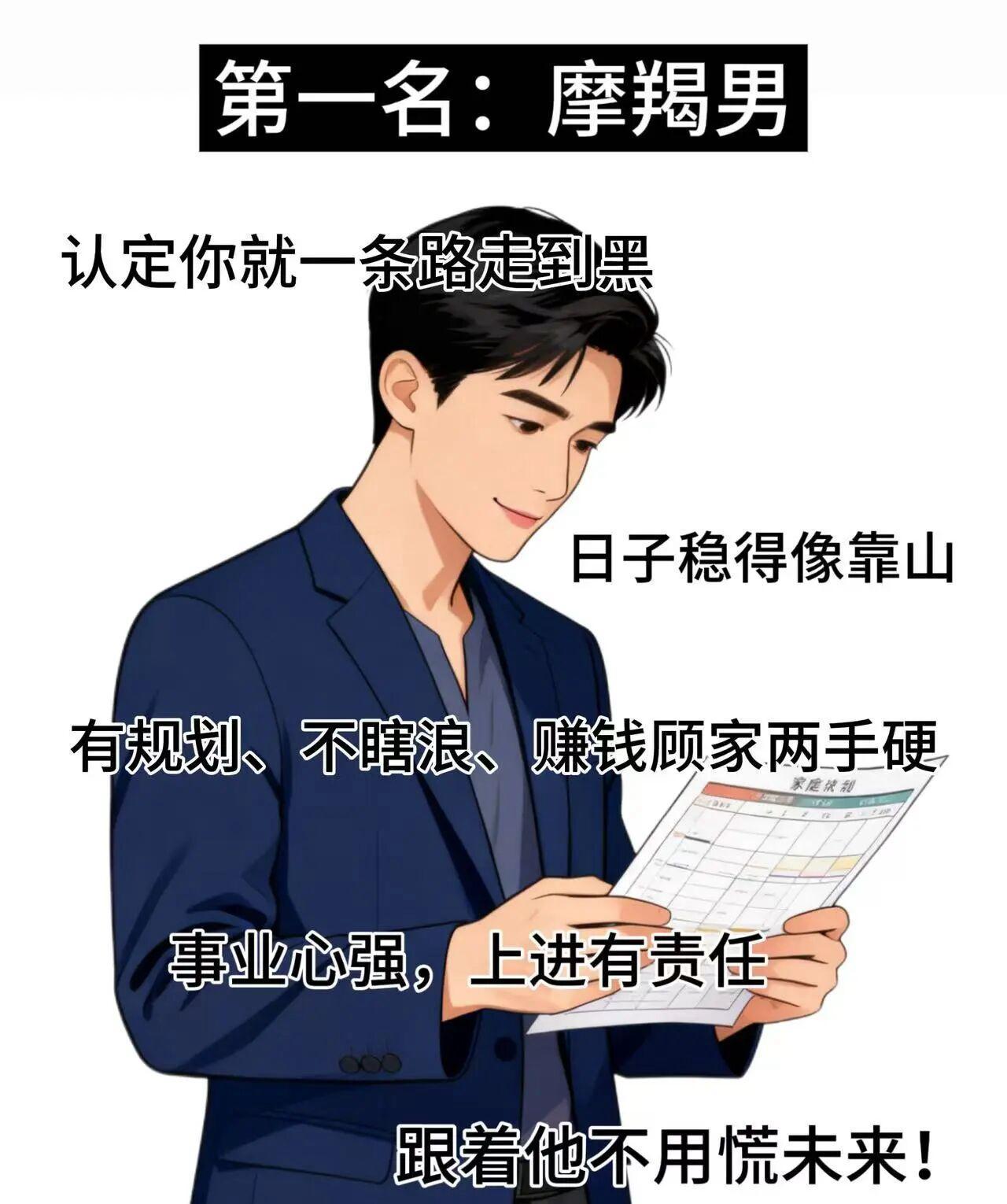 最适合当老公的5大星座男,值得女人托付终身! 说到这个话题,那肯定绕不开几个公认的好男人星座。 排在前面的,很多人第一个想到的就是巨蟹男。 为啥呢? 因为他们骨子里就刻着“家”这个字,简直就是为了家庭而生的。 你跟巨蟹男在一起,他不会跟你画什么大饼,也不会天天说那些虚头巴脑的甜言蜜语。 他会默默记住你的喜好,在你来例假的时候给你煮一碗热乎乎的红糖姜茶,在你加班回家的时候给你留一盏灯。 这种温暖是实实在在的,是渗透到生活细节里的。 他们可能有点情绪化,需要你哄,但他们对家庭的忠诚和付出,绝对是没得说的。 接下来必须提一下金牛男。 金牛男给人的感觉就是俩字:踏实。 他们不像火象星座那么激情四射,但他们能给你最稳固的依靠。 他们的人生规划里,你和未来的家是必不可少的一部分。 他努力工作赚钱,不是为了自己挥霍,而是想让老婆孩子过上更好的生活,买个大房子,换辆好车,这些都是他奋斗的动力。 而且金牛男大多是美食家,跟着他们有口福,他会带着你到处寻觅好吃的,或者亲自下厨给你做一顿大餐,生活里的幸福感不就这么来的嘛。 虽然有时候是有点犟,认定的事九头牛都拉不回来,但这份固执用在爱你这件事上,就是一辈子的承诺。 然后是摩羯男,这个星座的男人是典型的潜力股。 年轻的时候你可能觉得他有点闷,不太会搞浪漫,整天就知道工作。 但你得知道,摩羯男的爱是“先立业后成家”的模式。 他在外面打拼,承受所有的压力,就是为了给你一个安稳的未来。 他们是行动派,爱都做在了行动里。 他可能嘴上不说,但会把你写进他的人生计划里,每一步都为你考虑。 等他的事业稳定了,他会把全世界最好的都捧到你面前。 嫁给摩羯男,就像买了一支绩优股,一开始可能不起眼,但时间越久,回报越丰厚,越能感觉到他的好。 处女座的男人也必须榜上有名。 很多人觉得处女座挑剔、龟毛,但他们的这份挑剔,用在爱人身上,就变成了无微不至的照顾。 他会帮你把生活打理得井井有条,你丢三落四,他就是你的人形备忘录。 家里什么东西坏了,他会第一时间研究怎么修好。 你生病了,他比你还紧张,查资料、问医生,照顾得比谁都周到。 他的爱是润物细无声的,可能有点唠叨,但每一句唠叨背后都是满满的关心。 这种被人放在心尖上安排得明明白白的感觉,真的很有安全感。 最后说说狮子男吧。 虽然狮子男看起来霸道又爱面子,但他们当老公,也是有独特的好。 狮子男的爱是非常炽热和直接的。 他爱你,就要让全世界都知道你是他的女人。 他会把你宠成公主,给你买最好的东西,在朋友面前把你夸上天,极大地满足你的虚荣心。 他对你非常大方,只要他有,就愿意全都给你。 而且狮子男非常有保护欲,在外面绝对护着你,谁都不能欺负他的人。 跟着他,你会感觉自己就是女王,那种被捧在手心里的感觉,是其他星座给不了的。 其实星座这东西,看看就好,真正过日子还是得看人品和两个人的磨合,他爱不爱你,用心不用心,比什么星座都重要