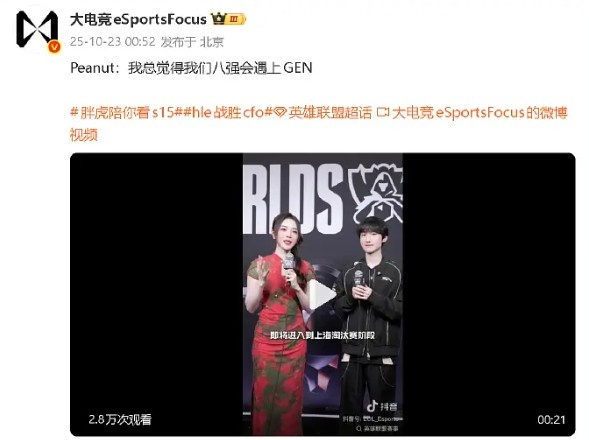 老预言家了!peanut曾在23日的采访里预测:感觉会在八强碰见GEN