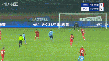 第18分钟,卡多索左路得球长驱直入杀入禁区后打门被扑,扑出的皮球打在高速回防的李提香身上反弹进球门,河南1-0浙江。↓