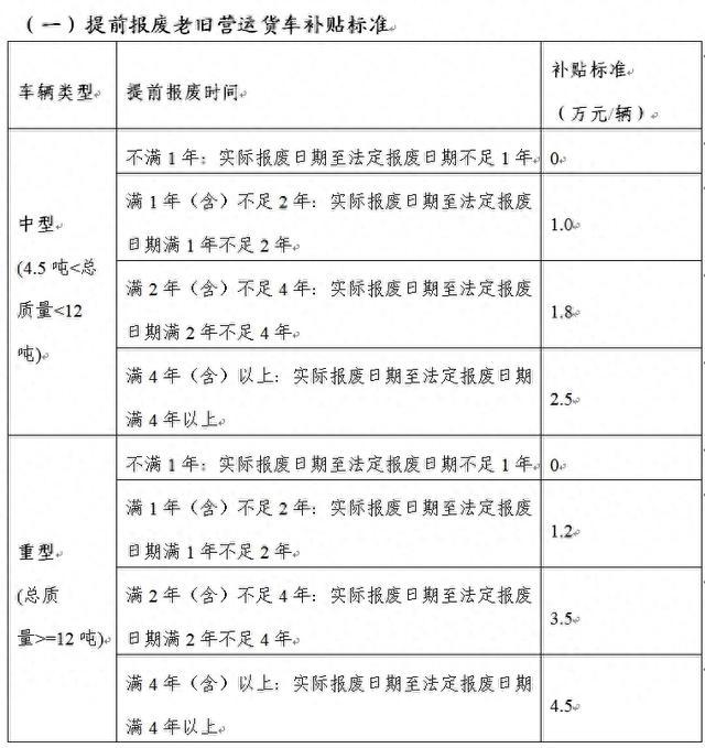 答:1.加力:新增“报废老旧营运货车提前报废时间不足1年的,可以申请新购营运货车补贴”的规定;