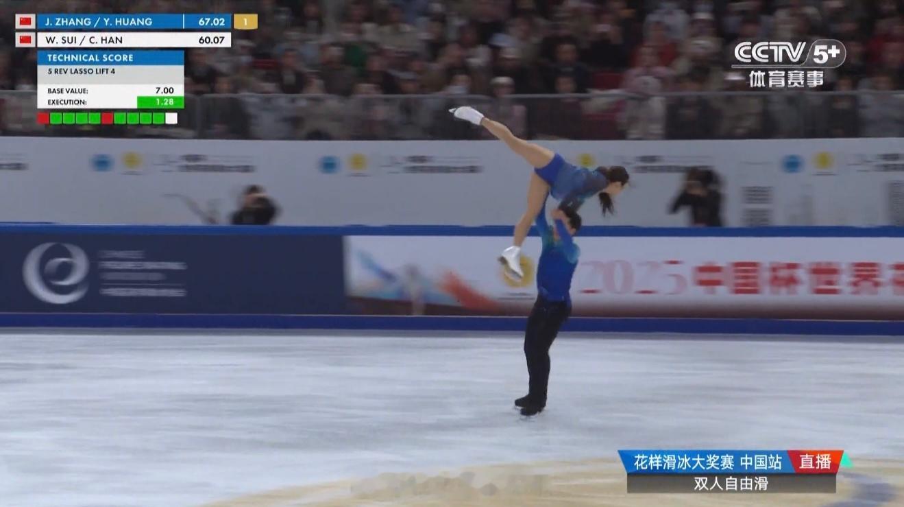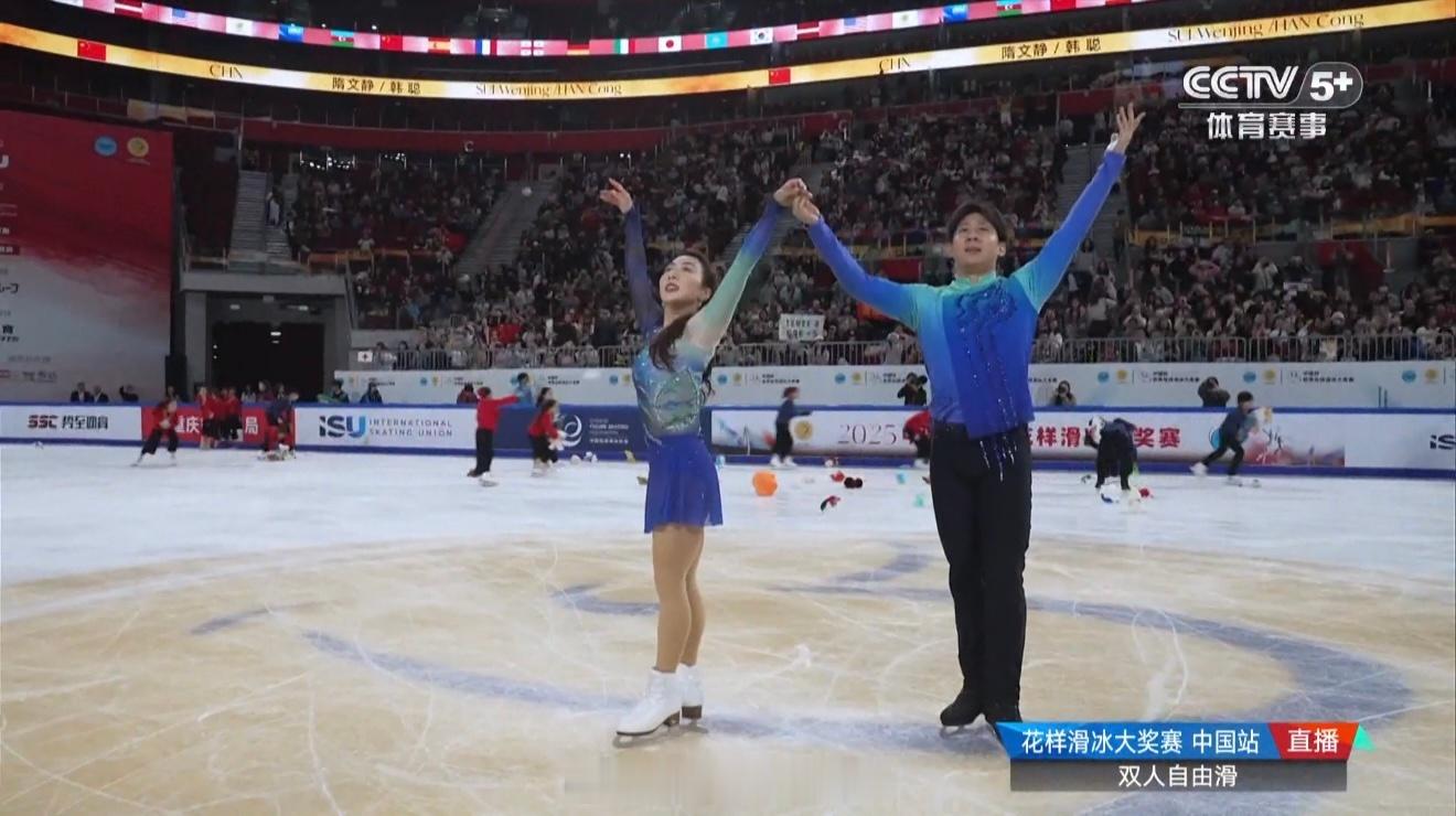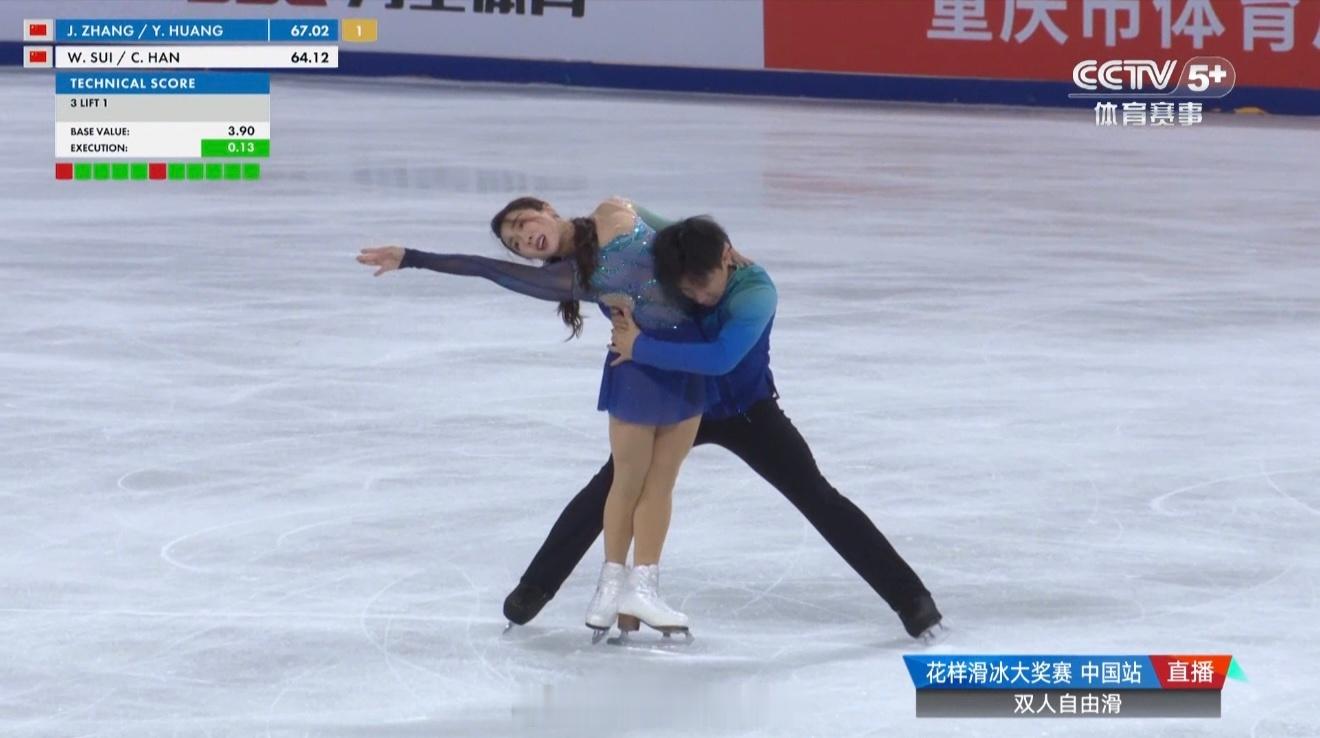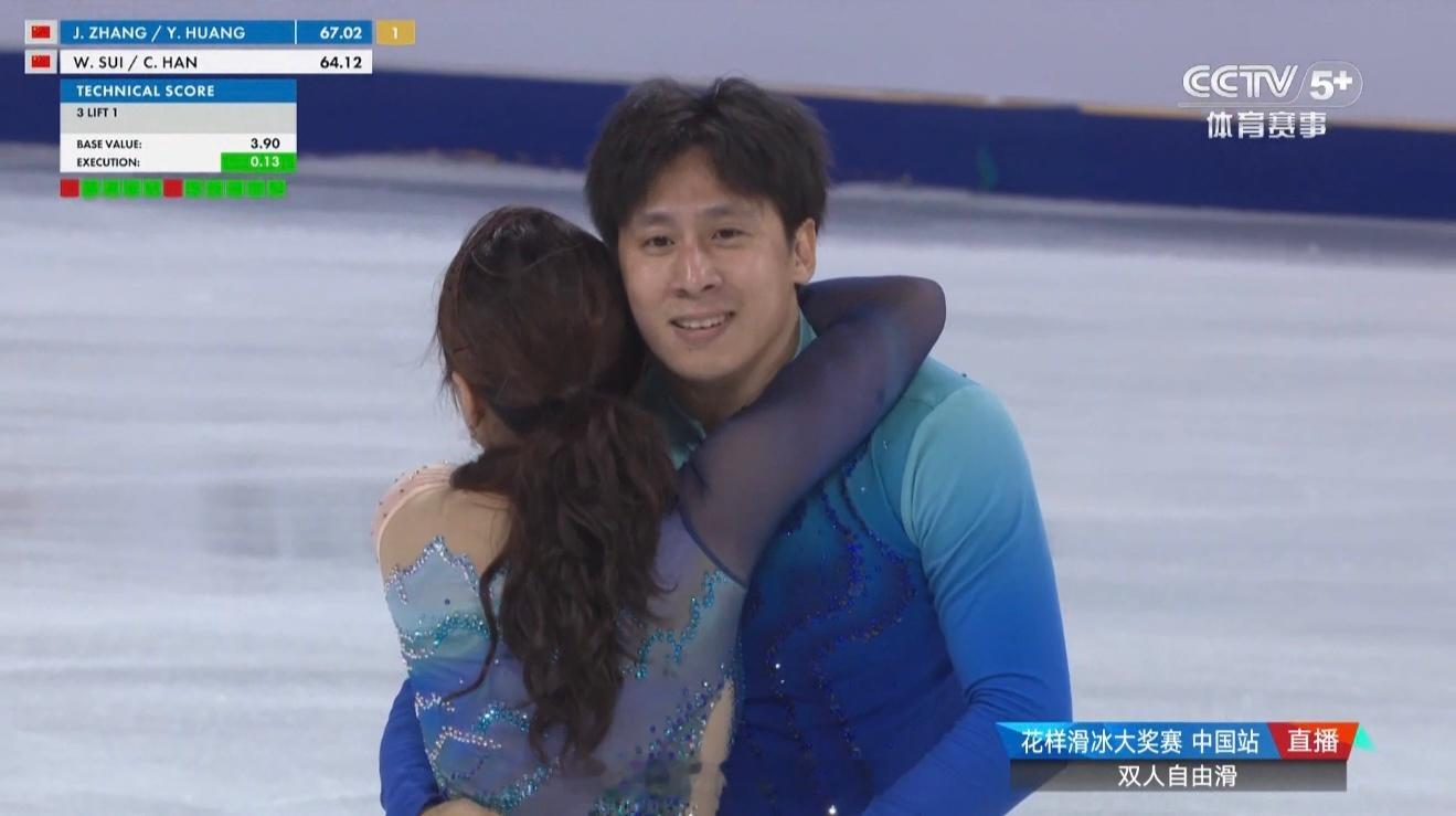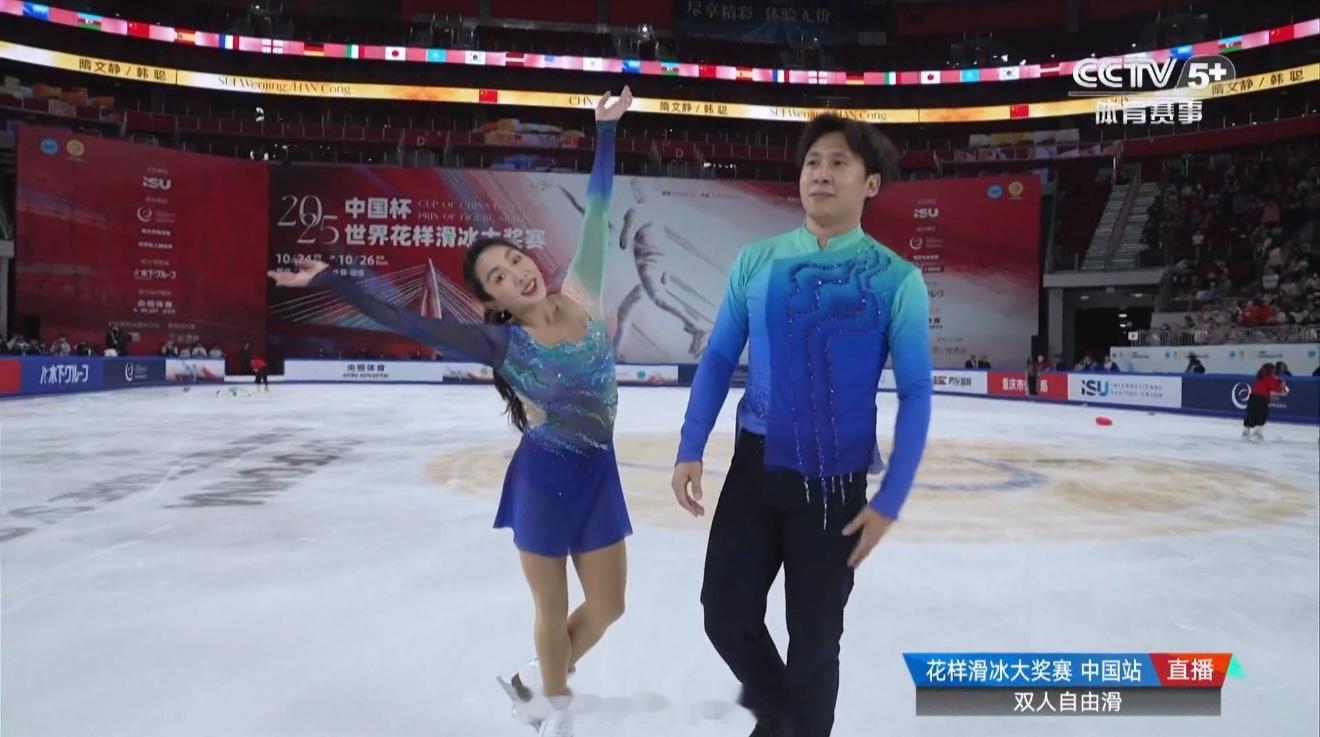 隋文静韩聪复出首秀摘铜中国杯世界花滑大奖赛,双人自由滑,时隔三年重返国际赛场的中