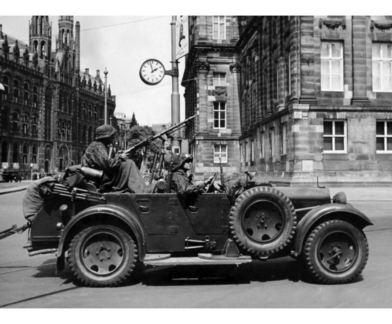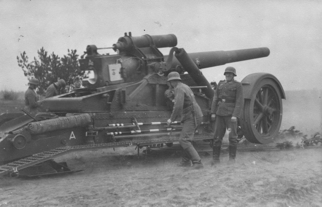 1942年,乌克兰南部,诺盖草原。德军第1山地步兵师正在行进。画面近处为一辆“漫游者”W11型桶车,画面后方是一门21厘米 Mrs.18型重型榴弹炮。 第1山地步兵师是德军精锐山地部队,因其雪绒花帽徽被称为"雪绒花师",擅长复杂地形作战。 漫游者W11桶车(参见图2)是漫游者汽车公司1927年投产的军用越野车,采用4×4驱动和60马力发动机,是德军早期标准化车辆之一。 21厘米 Mrs.18重型榴弹炮(参见图3)是莱茵金属生产的210毫米重型野战榴弹炮,最大射程16.7公里,需配属特种运输车牵引。