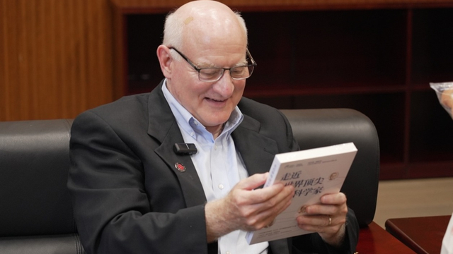 获得2025世界顶尖科学家协会“生命科学或医学奖”的美国犹他大学生物化学系特聘教授兼系主任韦斯·桑德奎斯特,饶有兴致地翻阅新书