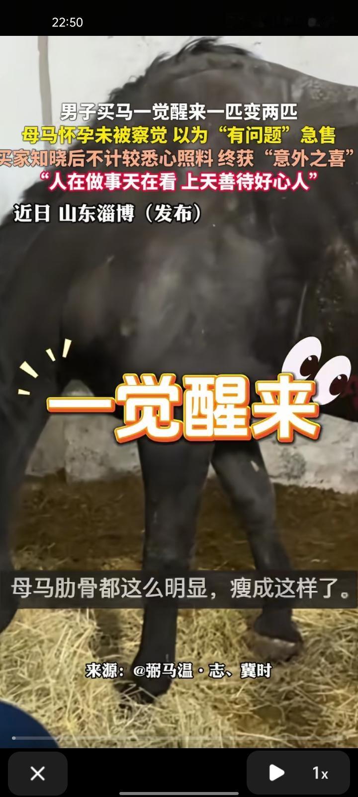 10月25日,山东淄博。男子因眼缘买下“可能患病”的马,一觉醒来一匹变成两匹!喂