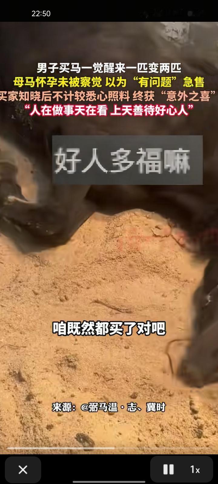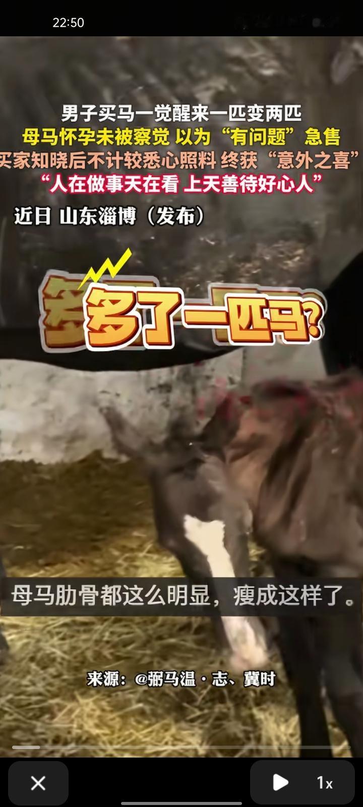 10月25日,山东淄博。男子因眼缘买下“可能患病”的马,一觉醒来一匹变成两匹!喂马之前,小马驹在里面行走了,心情是无法用言语表达出来的。 主人刘先生表示,买家以为这个马肺部有问题,因为当时跑两步就大喘气,当时它怀孕半年了,他就快刀斩乱麻的给了我。既然买了,就要好好对待。人在做事天在看,上天善待好心人。