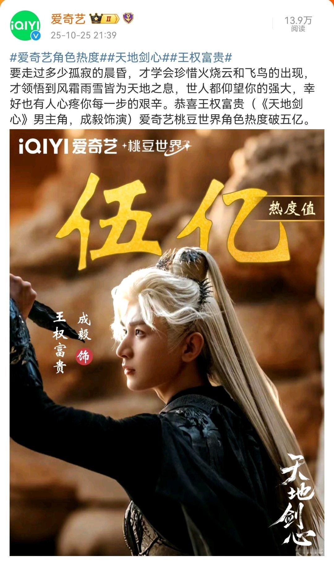成毅天地剑心爱奇艺首日热度破8000爆开打破纪录成为爱奇艺史冠!成毅王权富贵个人角色热度破五亿🐮 成毅 扛剧 一句毫无波澜让我连看五集成毅天地剑心大事很妙