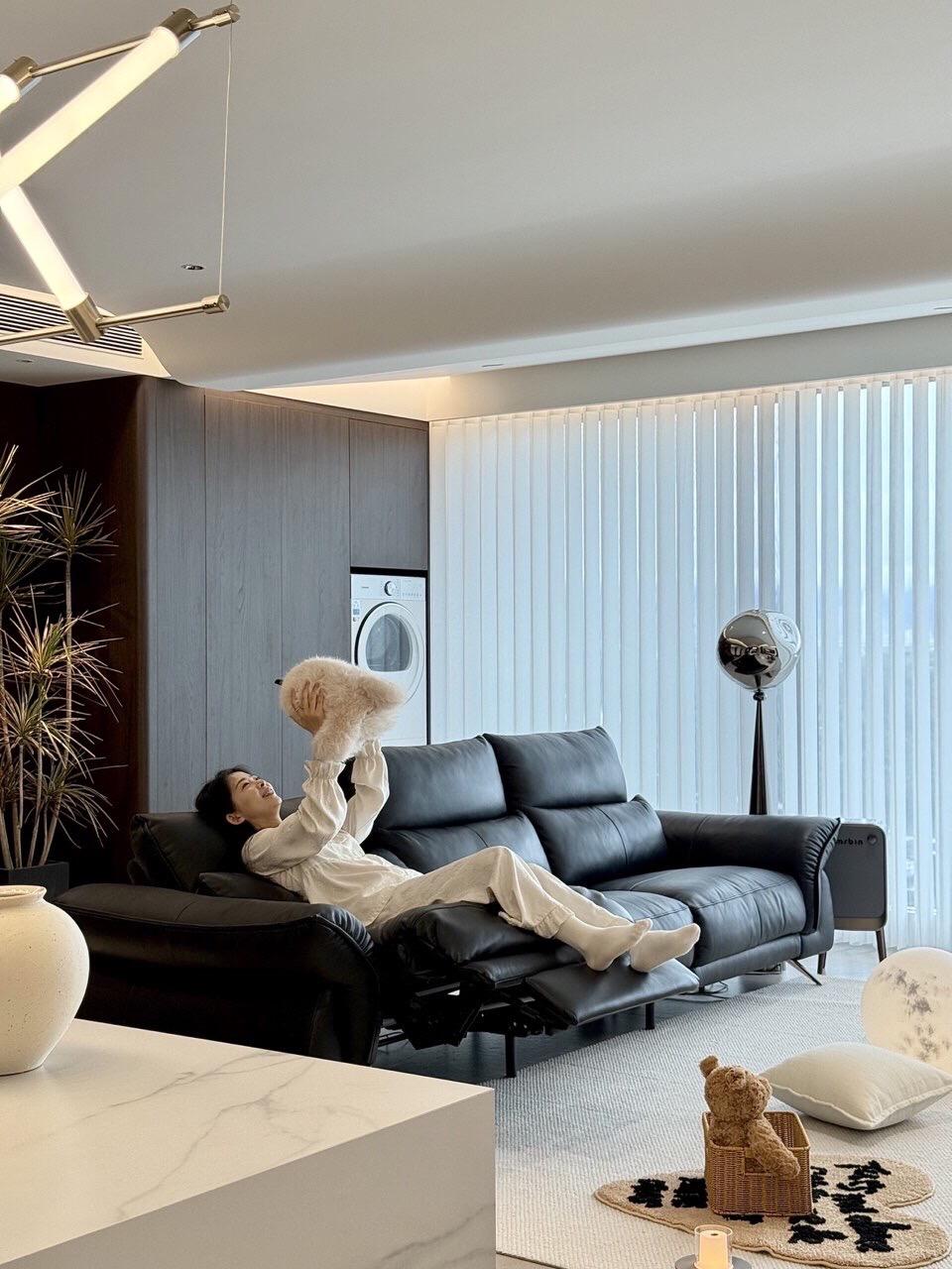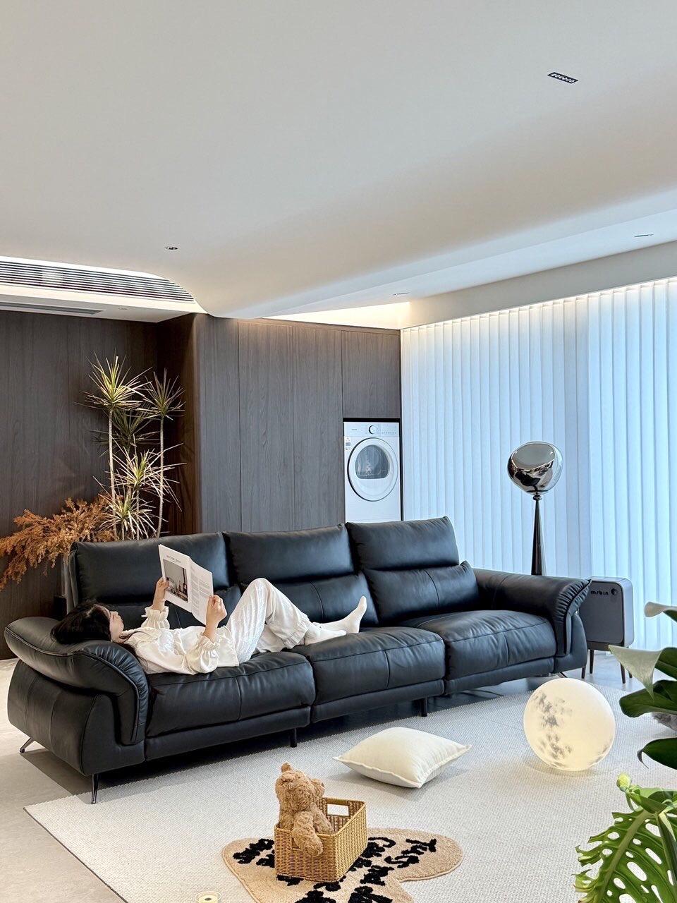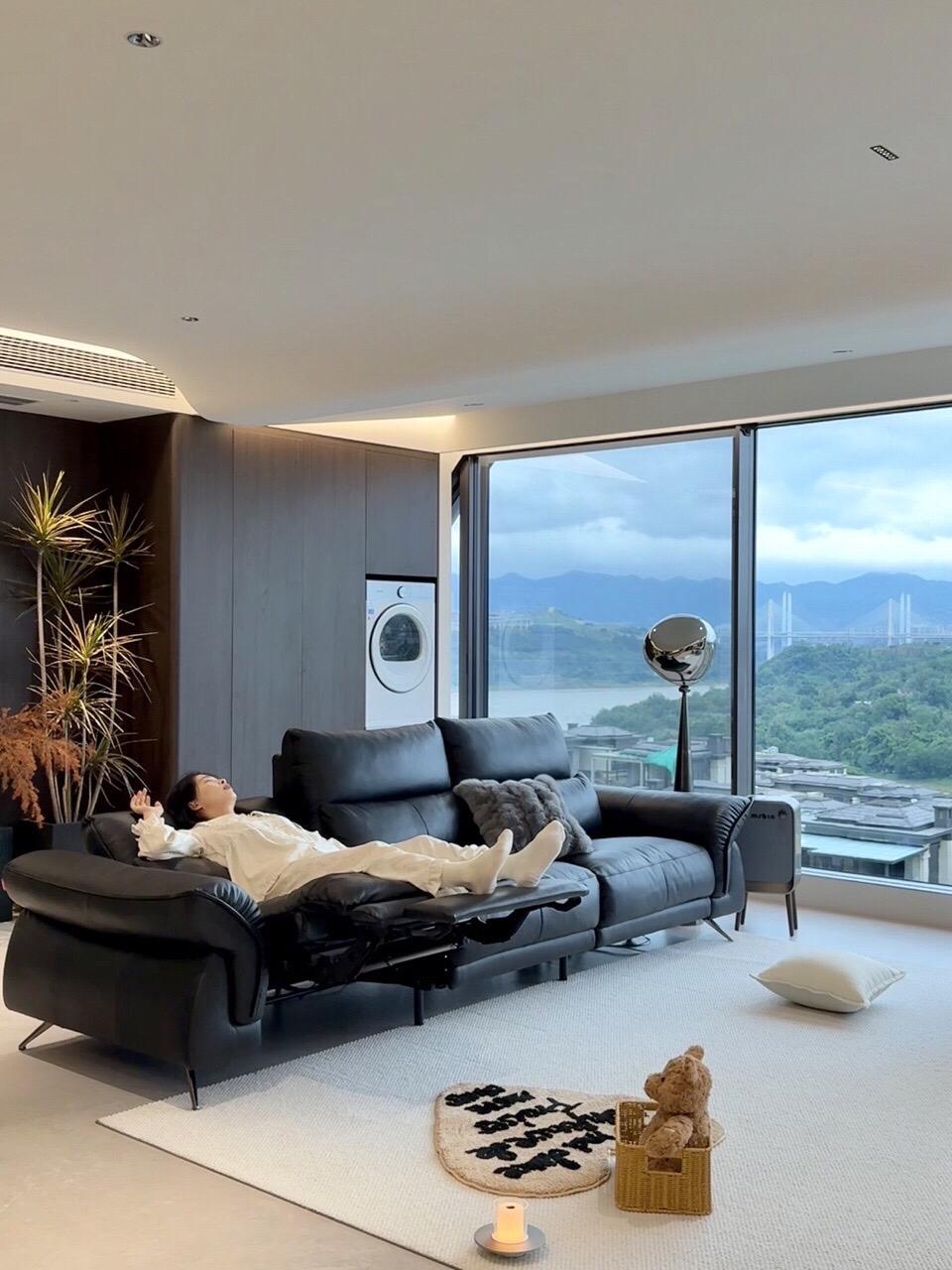 云舒电动沙发(星爵黑)入户实景 什么!云舒沙发还有别的颜色? 没错!超有质感的【星爵黑】长这样 风格百搭,让家居风格更有腔调 全皮包裹,柔光肤感皮细腻又大气 零重力模式,沉浸式享受漂浮感 顾家家居云舒电动沙发