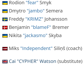 fnatic晋级Major后,CYPHER在CAC期间沦为替补。当时fear曾暗示战队组建六人阵容,表示"Major参赛名单将临赛决定"。