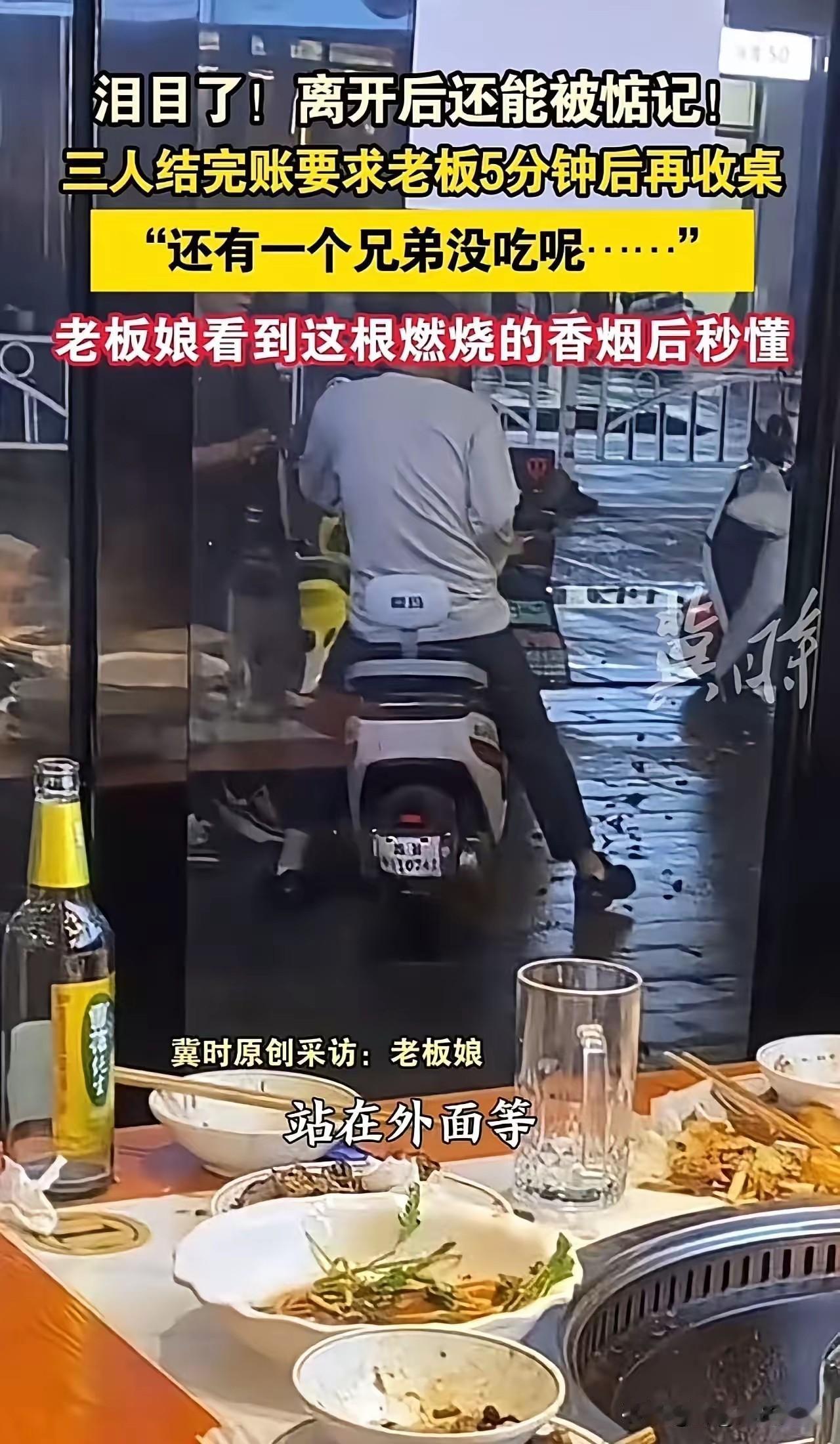 在繁华喧嚣的市中心,藏着一家毫不起眼的小餐厅,老板娘每日都在店里忙碌地招呼着客人。这天,三位年轻小伙刚用完餐,脸上洋溢着满足的笑容。他们唤来老板娘,准备结账。 老板娘笑意盈盈地走上前来,娴熟地算出账单:“一共三百五十元。”三人赶忙掏出钱包,把钱递了过去。老板娘利落地找好零钱,满脸笑容地说道:“谢谢你们,欢迎下次再来。”他们笑着点头,心情愉悦地离开了餐厅。 然而,就在他们离去不久,餐厅里的氛围陡然变得有些异样。三个小伙子里,有一人似乎迟疑了片刻,随后折返餐厅,轻声对老板娘说:“老板娘,能麻烦您再等五分钟吗?我们有点事要处理。”老板娘满脸疑惑地看着他们:“没问题,你们快去忙吧。”她心想,许是他们有什么急事。 五分钟后,三人再度现身,手里提着一个沉甸甸的袋子。他们走到老板娘跟前,眼神中透着一丝复杂:“老板娘,这是我们刚刚打工挣来的钱,想以此感谢你们周到的服务。”言罢,便将袋子递了过去。 老板娘先是一愣,打开袋子一看,里面有一些现金和一封信。信中写道:“感谢你们的热情与耐心,让我们度过了一个温馨的夜晚。我们深知你们的辛劳,也想用自己的微薄之力,表达我们的感激之情。”读完信,老板娘的眼眶不禁湿润了。 “你们这是……”老板娘声音哽咽,眼中满是感动。 “我们只是想让您知道,你们的善意与付出,真的暖人心扉。”其中一个小伙子语气坚定地说道。 老板娘抹了抹眼角的泪水,微笑着点头:“谢谢你们,你们的心意我收下了。这份感动,比任何东西都宝贵。” 那一刻,餐厅里的空气仿佛都变得愈发温暖。三位年轻人用行动诠释了善意与感恩的力量,也让老板娘明白,或许这世界依旧充满温情与希望。 他们离开后,老板娘望着那袋钱和信,心中感慨万千。或许,这便是生活中最珍贵的瞬间——那份纯粹的善意,能让人动容,也能让世界变得更加美好。