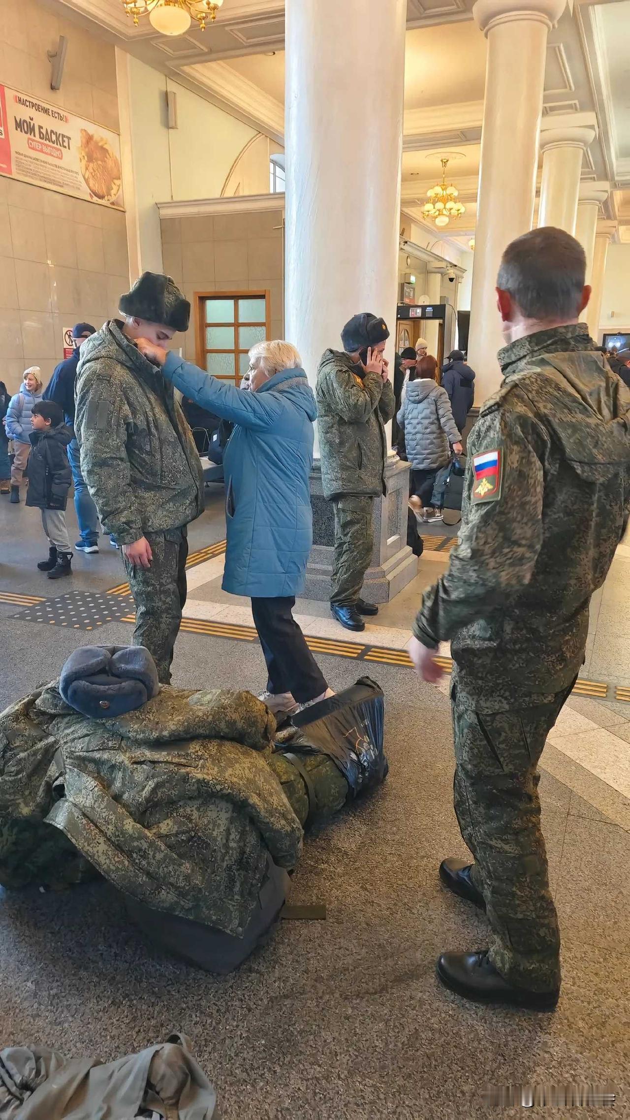 俄罗斯莫斯科,一位老母亲正在车站里送别即将奔赴战场的儿子。 她看着年轻的儿子,眼神里真是充满了不舍,只希望儿子最后能够活着回来!