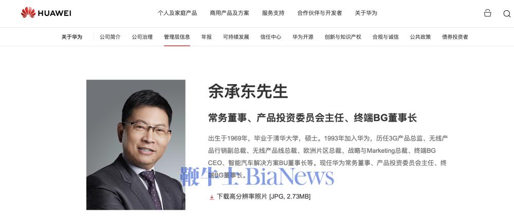 同时,余承东仍然担任华为常务董事、终端BG董事长。