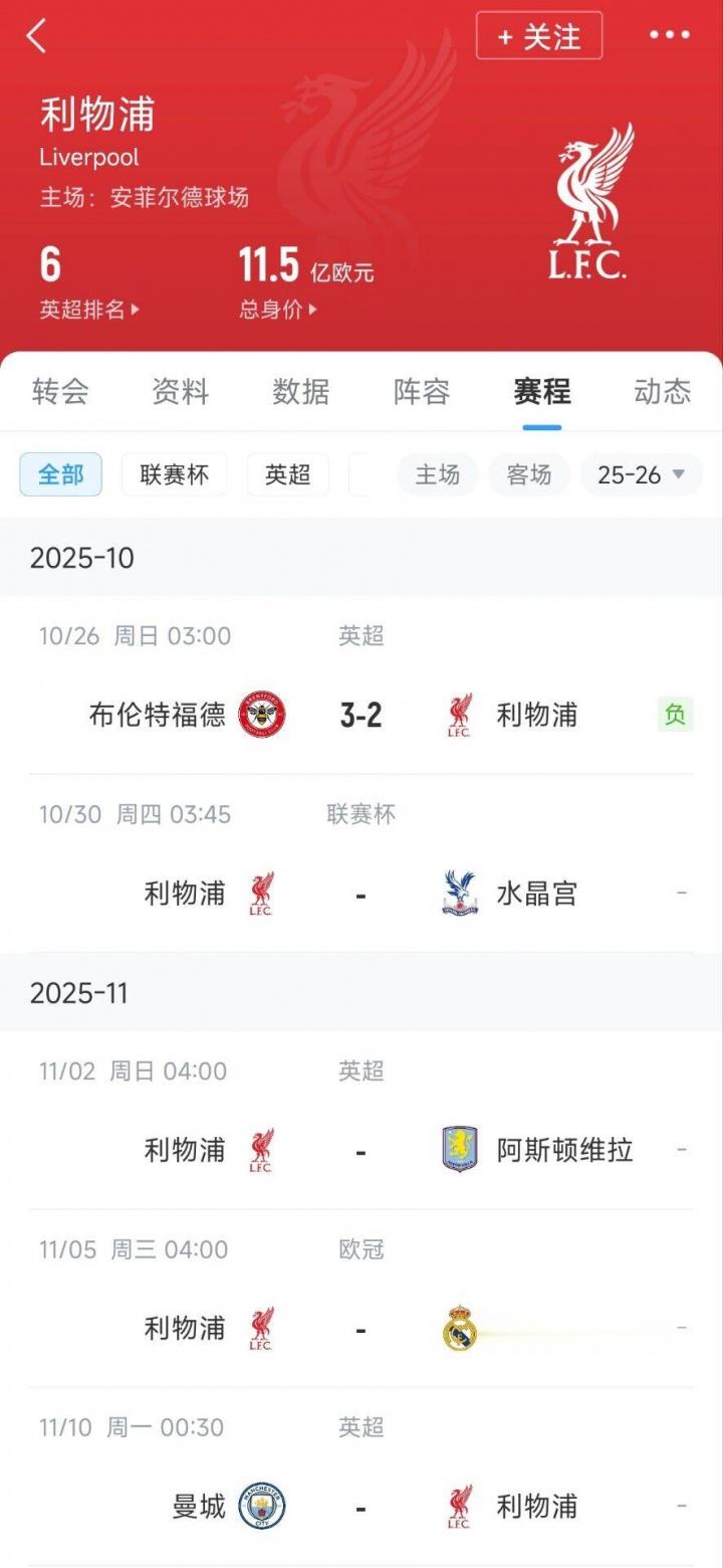 直播吧10月26日讯英超第9轮利物浦2-3不敌布伦特福德,遭遇英超四连败。