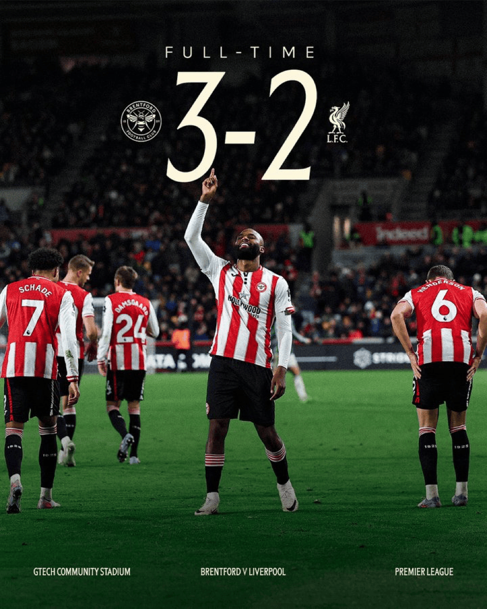 虎扑10月26日讯北京时间今天凌晨结束的英超联赛,利物浦2-3不敌布伦特福德,遭遇联赛四连败。