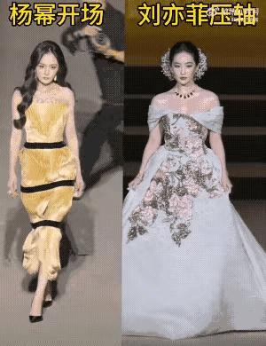 最让人心旷神怡的出场,当属开场的杨幂,压轴的刘亦菲,还有犹如在逃公主的欧阳娜娜。 杨幂第一个出场,一出现就惊艳了所有人,她一身金色战袍,被束缚住双腿的黑色丝带,让她犹如在T台上漫步,走出了不一样的神韵。 刘亦菲作为最后一个出场的明星,艳压群芳,单是她的从容和自信,就无人能比。 她缓缓走出来,犹如从仙境里飘出来一样,这么多年了,神仙姐姐的美名,非她莫属。 和所有明星不同的是跳跃着出场的欧阳娜娜,手拿一束鲜花,好像从城堡里跑出来的仙子,新颖独特。