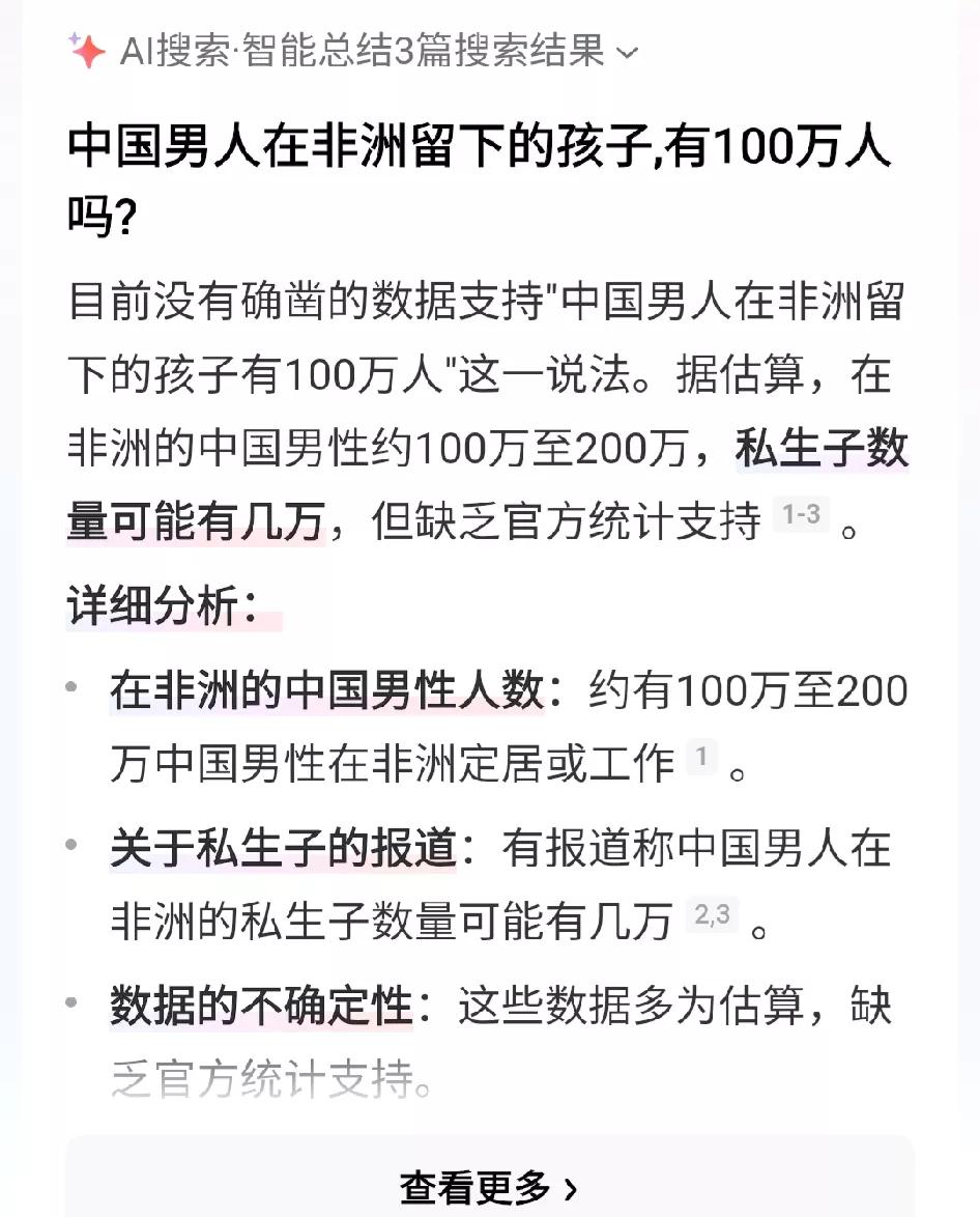 [乌干达中国弃儿基金会成立。] 关于华男在黑非洲处处留情,丢下一大堆华非混血儿,驻非华人团体也在作出补救,比如这个乌干达中国弃儿基金会(图1)。 这个基金会的成立其实己有一段时间了。它另外还有一个名称,叫"乌干达中国父亲基金会",几个华人捐助了起始资金。 他们希望同类基金会也能在其他非洲国家陆续建起来。 华男在非洲留下私生子女的报道,十多年前就有很多。非洲风俗是男女先生孩子再结婚,非女又容易上手。所以对于相对保守的华男来说,他们也把持不住。 但这些华男大多在老家有老婆,事先就知道私生子是带不走的。 而部分非女可能也知道华男在老家有老婆,但因为生活困难,故委身于华男换取金钱。 所以,男女双方都有错,不能独指责一方。 但他们的私生子女是无辜的。 一般华男离开非洲后,就和非女以及私生子断绝了一切联系。极少数良心好的也会给他们寄钱,但持续时间都不会太长。毕竟老家有妻儿,他们也怕影响家庭和睦。 这样,非洲大地留下一大堆中非混血私生子。 至于人数有多少?反正不低(图3),几万人是有的,可能是全球最大的一个私生子群体,这是真的。 他们大多永远见不到自己的中国爸爸,同时在非洲大地上受到歧视…
