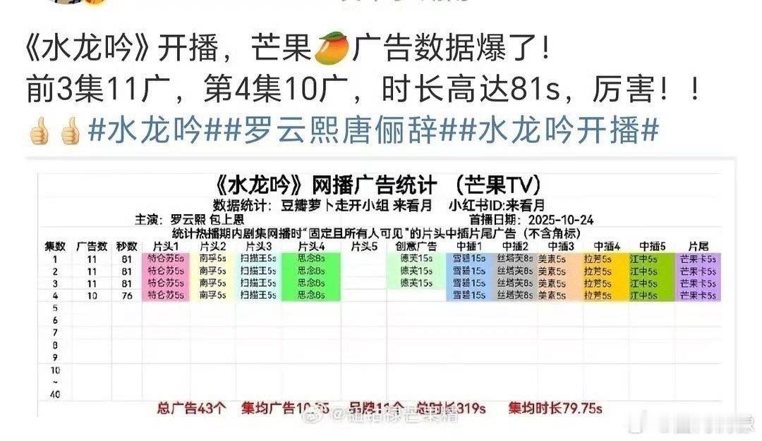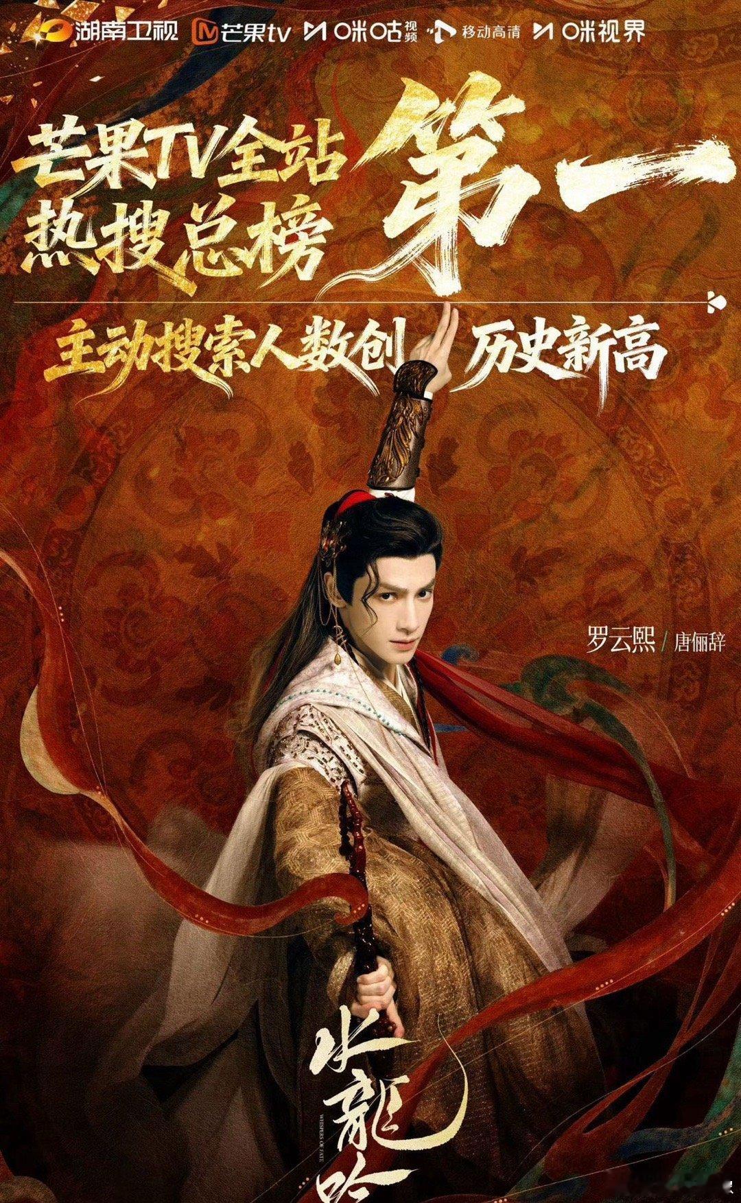 罗云熙85生扛剧能力《水龙吟》数据疯了!芒果播放量创新高,热搜、热度全登顶,广告