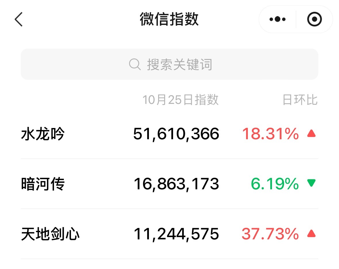 10.25云合占有率暗河传10.2%水龙吟8.3%天地剑心