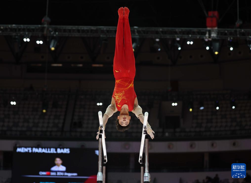 当日,在印度尼西亚雅加达举行的2025年国际体操联合会(FIG)竞技体操世锦赛男子双杠决赛中,中国选手邹敬园夺得冠军。
