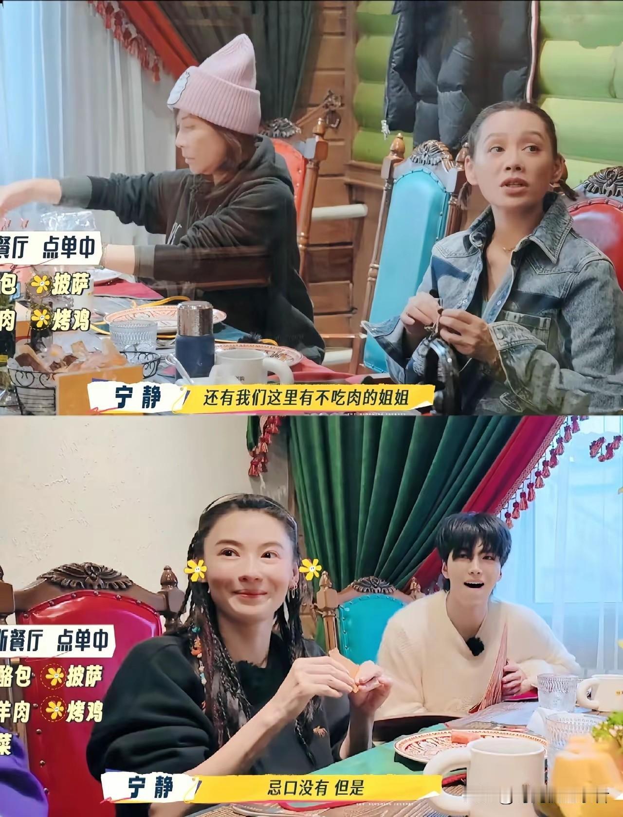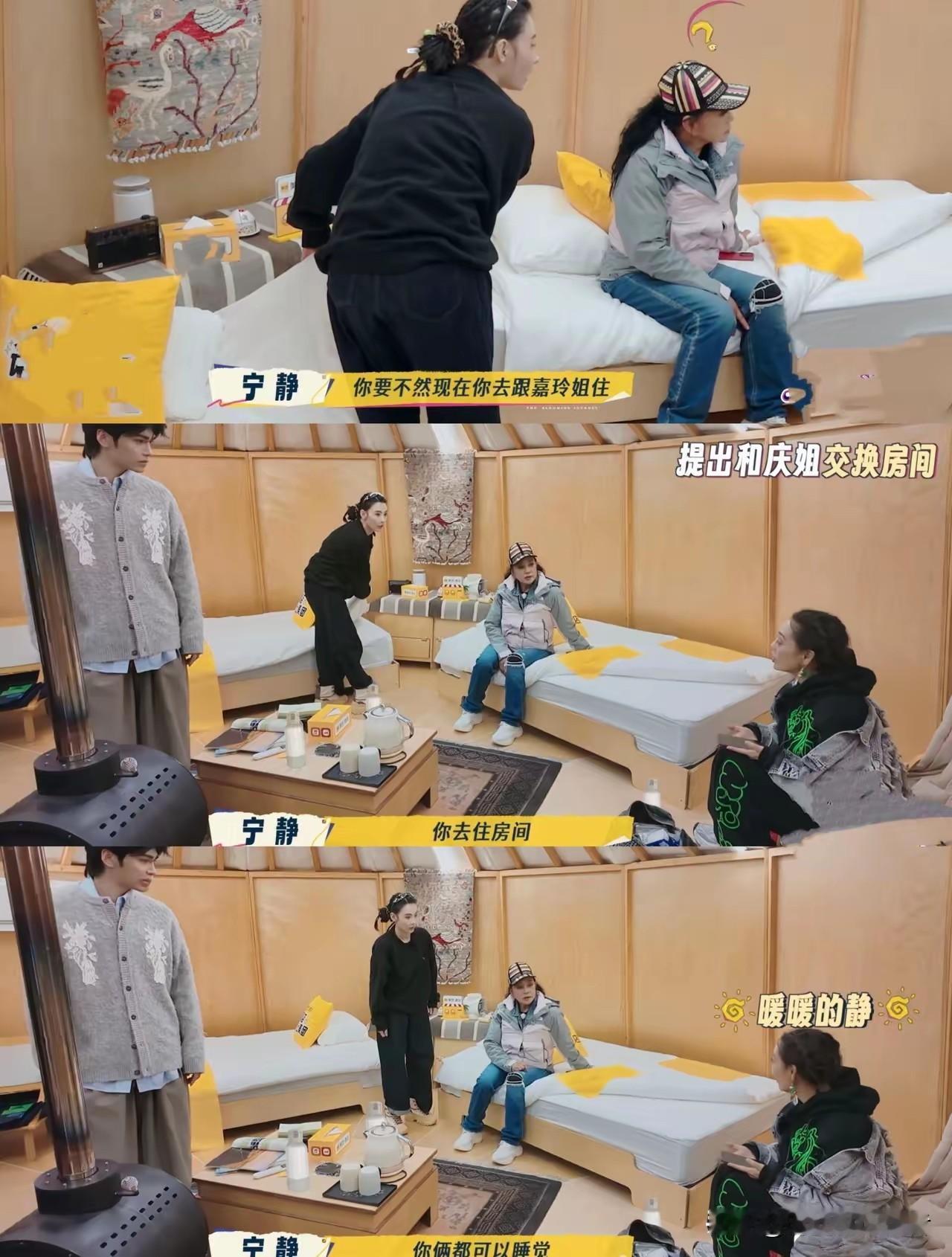 宁静真的生动的体现了上有老下有小,宁静平时看起来挺娇气的,上了节目竟然如此暖心,照顾弟弟妹妹,体恤老姐姐们。 宁静这次和张柏芝,刘嘉玲,何赛飞,刘晓庆,柯淳,邵子恒相处的太好了。
