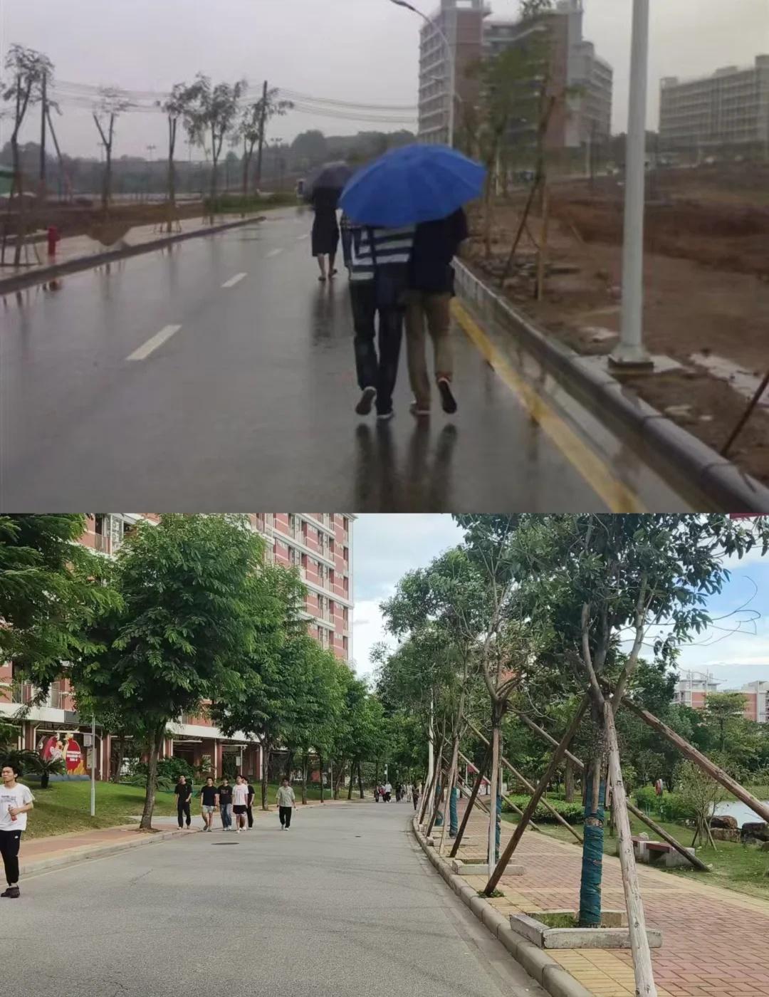 广东工贸学院14年前后照片对比 2011年,作为母校广东工贸职业技术学院白云新校区首届新生,喜提最迟开学高校,也许谁的青春不遗憾在此时此刻具象化了!怀念学校生活 如今14年过去了,曾经的黄土高坡,现在是满园绿阴;当年的小树苗,如今已是枝繁叶茂,汇成一条条可以悠然漫步的林荫校道;曾经唯一的运动区域篮球场,如今已不再是篮球场! 母校,还是那个母校,书声琅琅;母校,已不是那个母校,她披上了绿色的新装,变得更加温厚和深邃! 当年开学学校仅有几栋建筑,满园黄土灰尘,实在没留下太多当年的老照片,若有校友还能找到11-13年学校的老照片,欢迎评论区晒出来,谢谢! 母校承载了多少回忆 镜头下的校园 怀念过去怀念青春