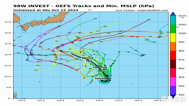 台风快报:随着20号台风潭美向我国南海东北部移动,位于西北太平洋北马里亚纳群岛附近,新生成两个台风胚胎,分别是97W和98W。