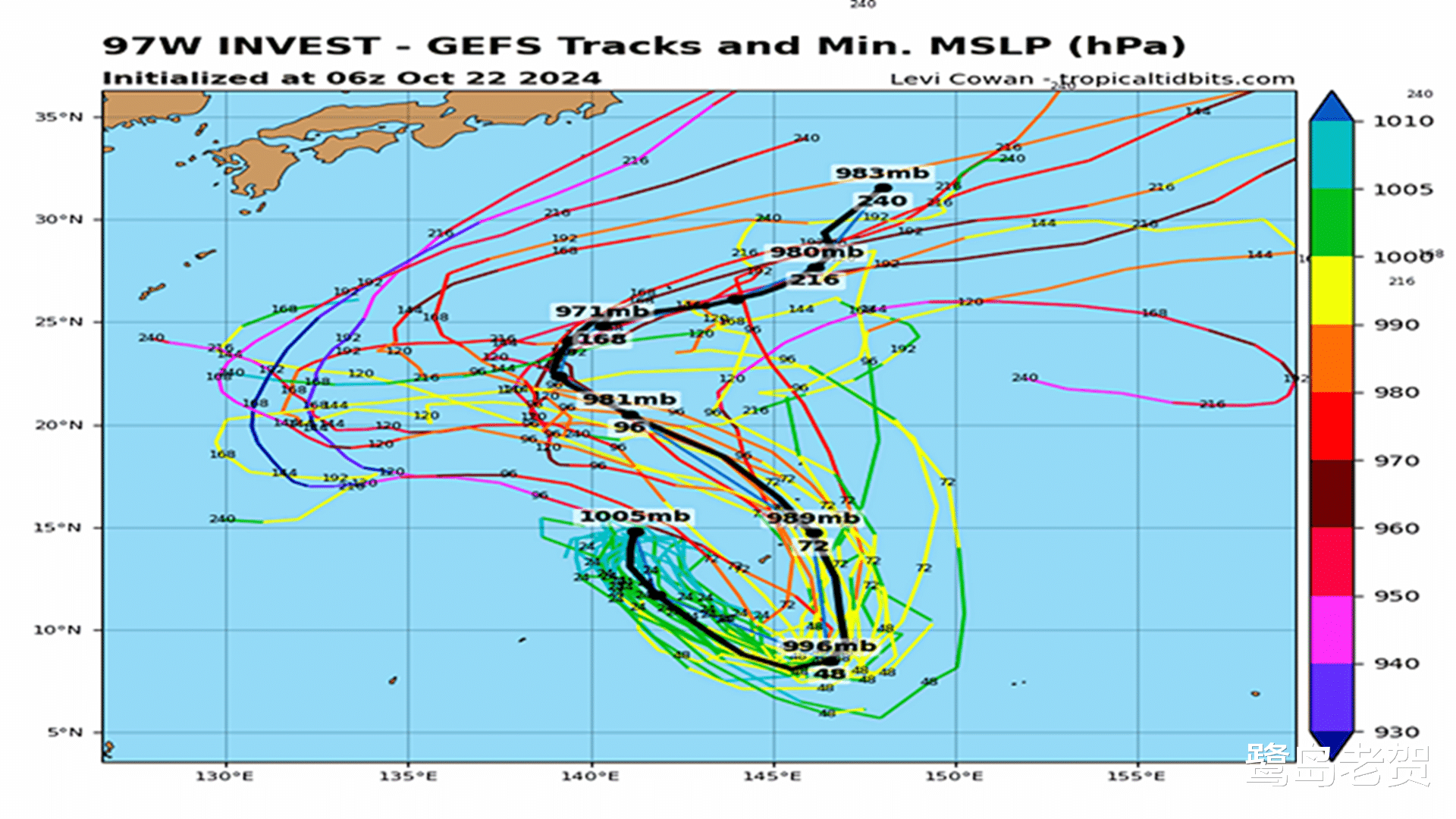 97W台风胚胎相对强盛,预计在25号之前中心风力加强到8级,中心气压998百帕,风速18米每秒,达到这个条件就会被命名为2024年第21个台风康妮,台风名称由柬埔寨提供,名称含义漂亮的少女,也是一个山名。