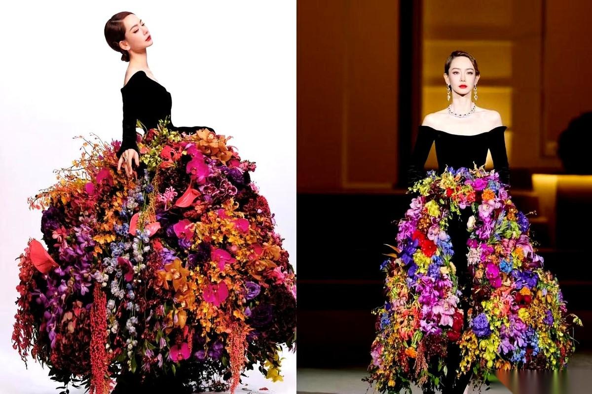 我天,戚薇那件100斤的裙子,直接给我看傻了。 100斤啊!一个瘦点儿的成年女孩的体重,就这么硬生生穿在身上。 为了走那几步红毯,为了搏一个出位。 说实话,第一眼是惊艳的。 全是真花,日本空运来的,一层一层手工插上去,里面还藏着钢骨架…… 这哪里是礼服,这分明是一座移动的小花园,一件行为艺术品。 看到她笑着从裙子上摘花送给杨幂、刘亦菲,那一刻觉得,这姐们儿是真豁得出去,也真有想法。 把“百花齐放”这个主题,玩明白了。 但热闹劲儿一过,心里就咯噔一下。 这得花多少钱? 就为了这几分钟的璀璨,然后呢?花会谢,人会累。 听说后来裙子都蔫了,小了一大圈。 突然觉得,咱们普通人天天挂在嘴边的“松弛感”,对她们来说,可能才是最昂贵的奢侈品。 身上穿着100斤的美丽,心里又背着多少斤的KPI和焦虑呢? 哎,这碗饭,真不是谁都能端的。