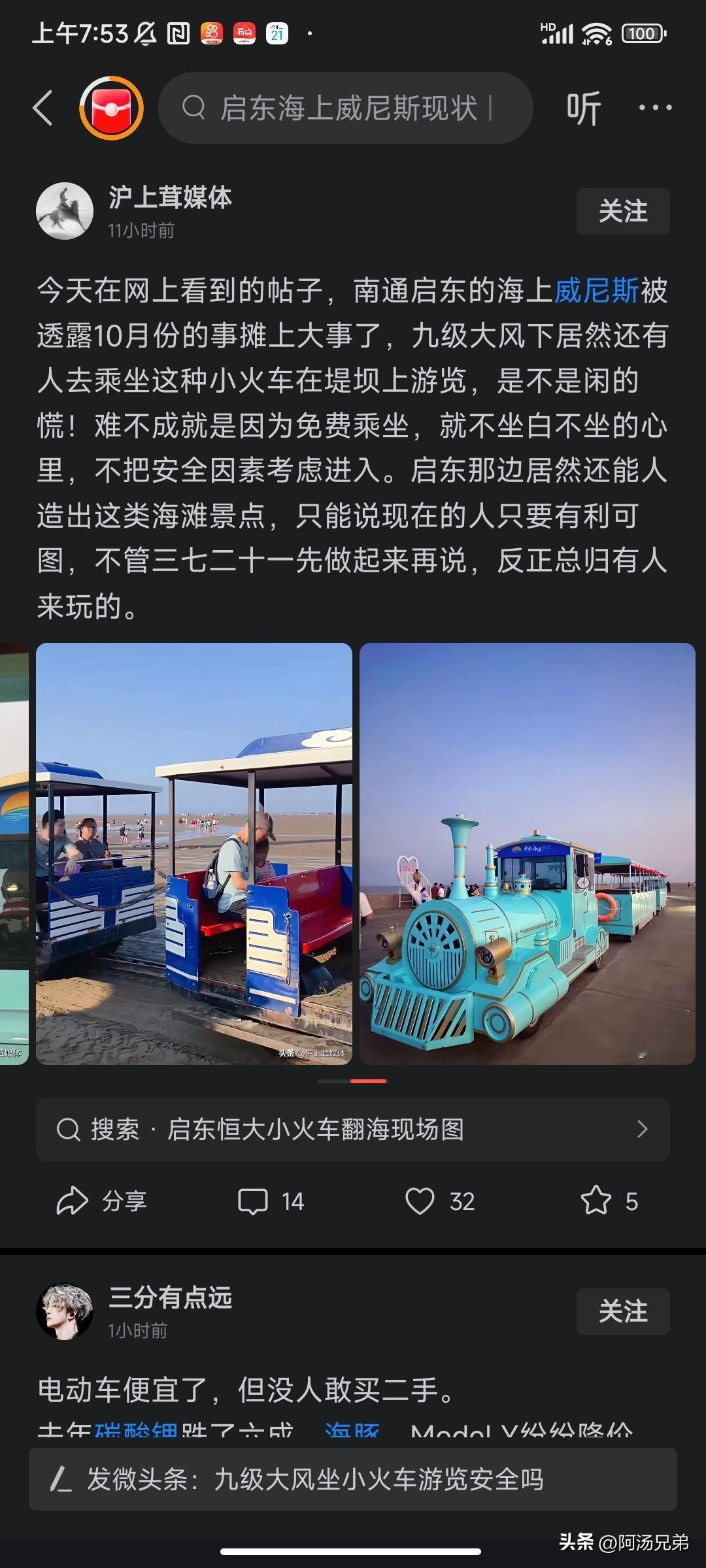 南通启东海上威尼斯小火车入海事件。 当场死亡四人,出现事故很正常,分析