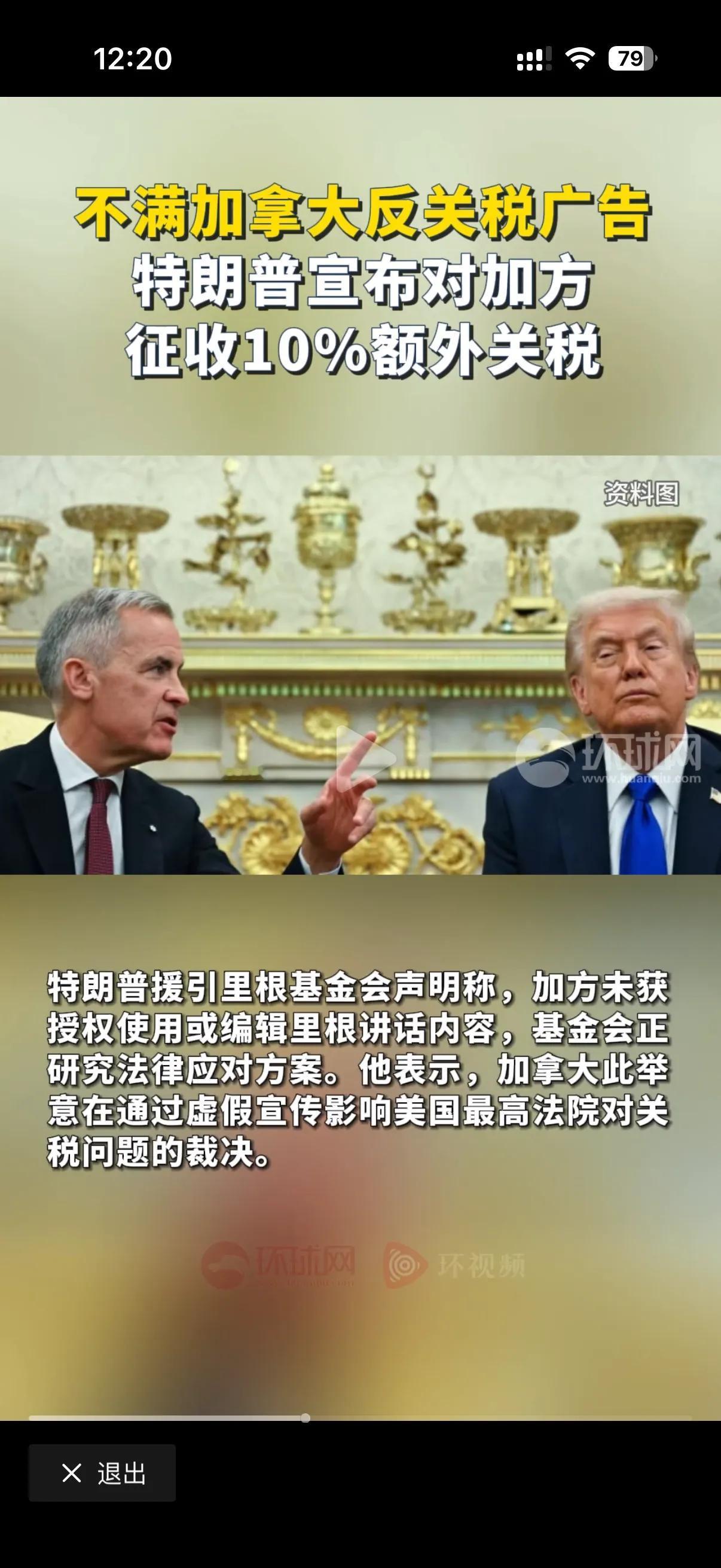 干影视后期剪辑的能捅多大篓子? 答案是让自己国家被加征百分之十的关税! 特朗普不是给加拿大加征了百分之十的关税么? 原因就是加拿大反征收关税的视频用ai制造了美国前总统里根的虚假讲话! 现在加拿大已经把该广告撤掉了! 但是加收的关税想要撤掉可就难了!所以说捅娄子是不分行业的!