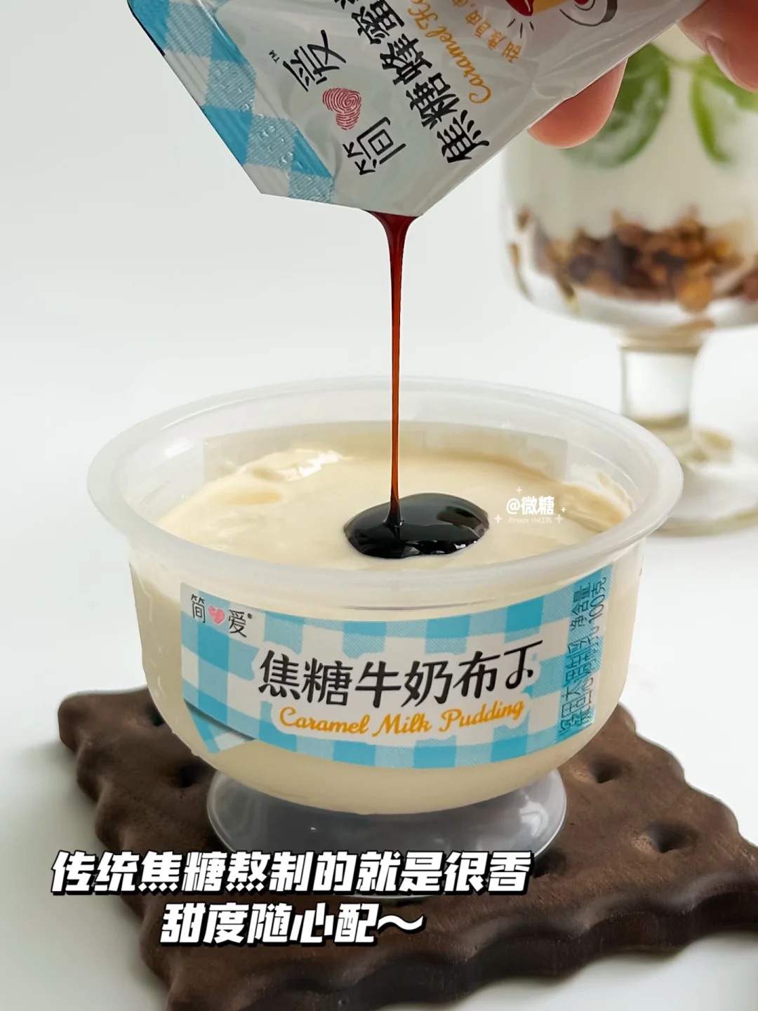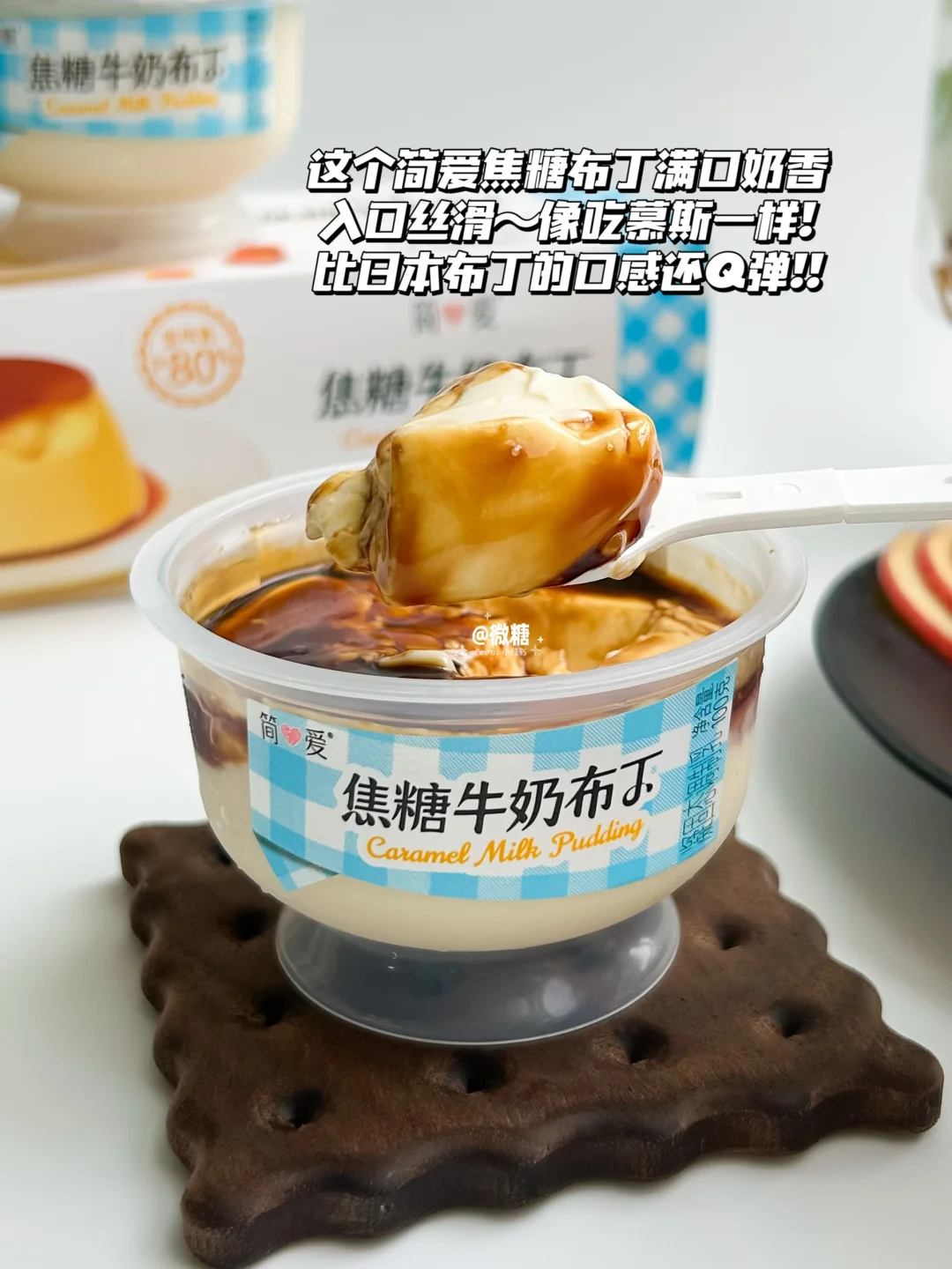 亮点是简爱焦糖布丁,本来是给孩子买的小零嘴,没想到和早餐超搭!成功俘获我的心🤩它是用优质生牛乳和甄选焦糖做的,味道很醇香浓郁!在冰箱冰一下,口感立刻升级,冰冰凉凉,丝滑绵密得就像一口鲜奶慕斯,感觉比日本布丁的口感还勾人,一抿就化~