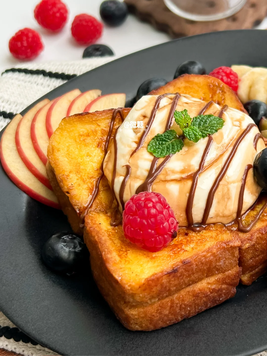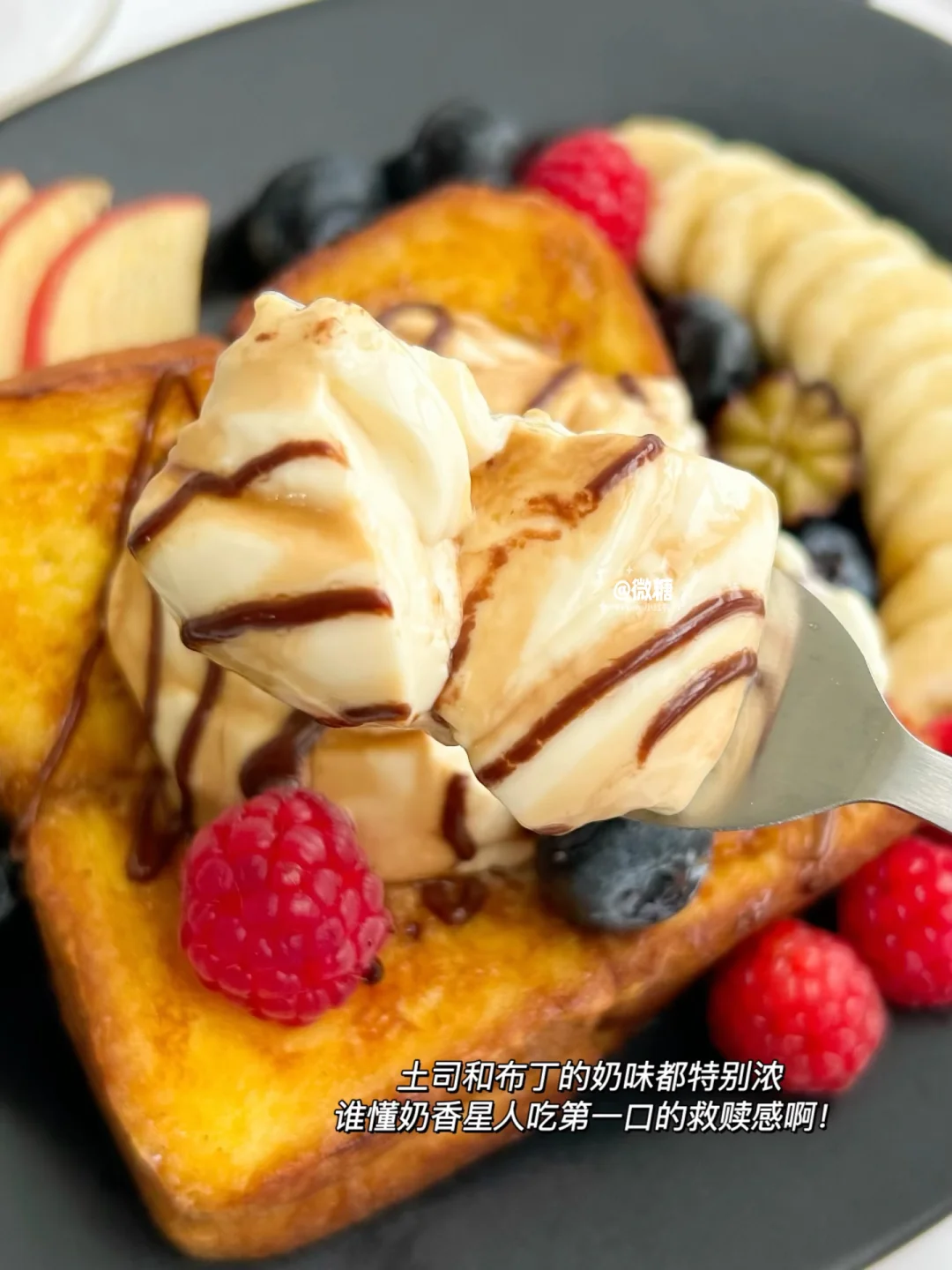 公主请用餐🍽️今天给自己安排一道漂亮早餐✨莓果布丁西多士➕青提布丁芭菲杯~好看又好吃🥹吃一口感觉烦恼都扫光光啦~甜品治愈一切!!家里的小崽子也是跟着吃上甜品店同款漂亮饭啦🤩