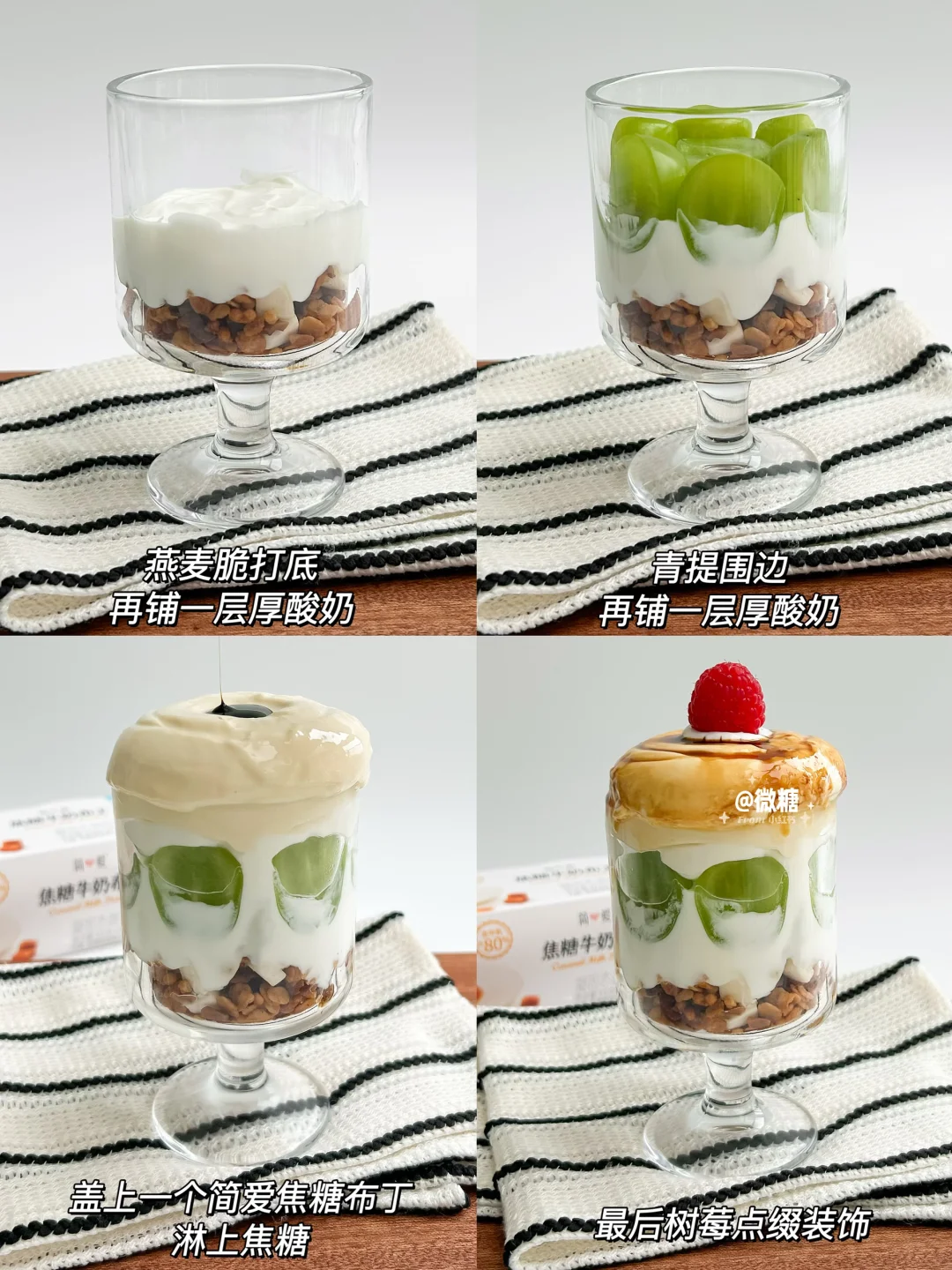青提,燕麦脆,厚酸奶/奶油,树莓,简爱焦糖布丁
