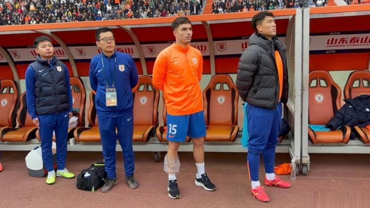 泰山跟队记者牛志明社媒晒出了洛佩斯在场边观战的照片,球员右小腿处被厚厚的冰袋包裹着。牛志明在社媒写道:“路易斯-洛佩斯在场边,受伤了。”