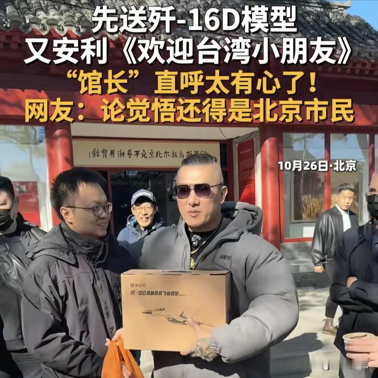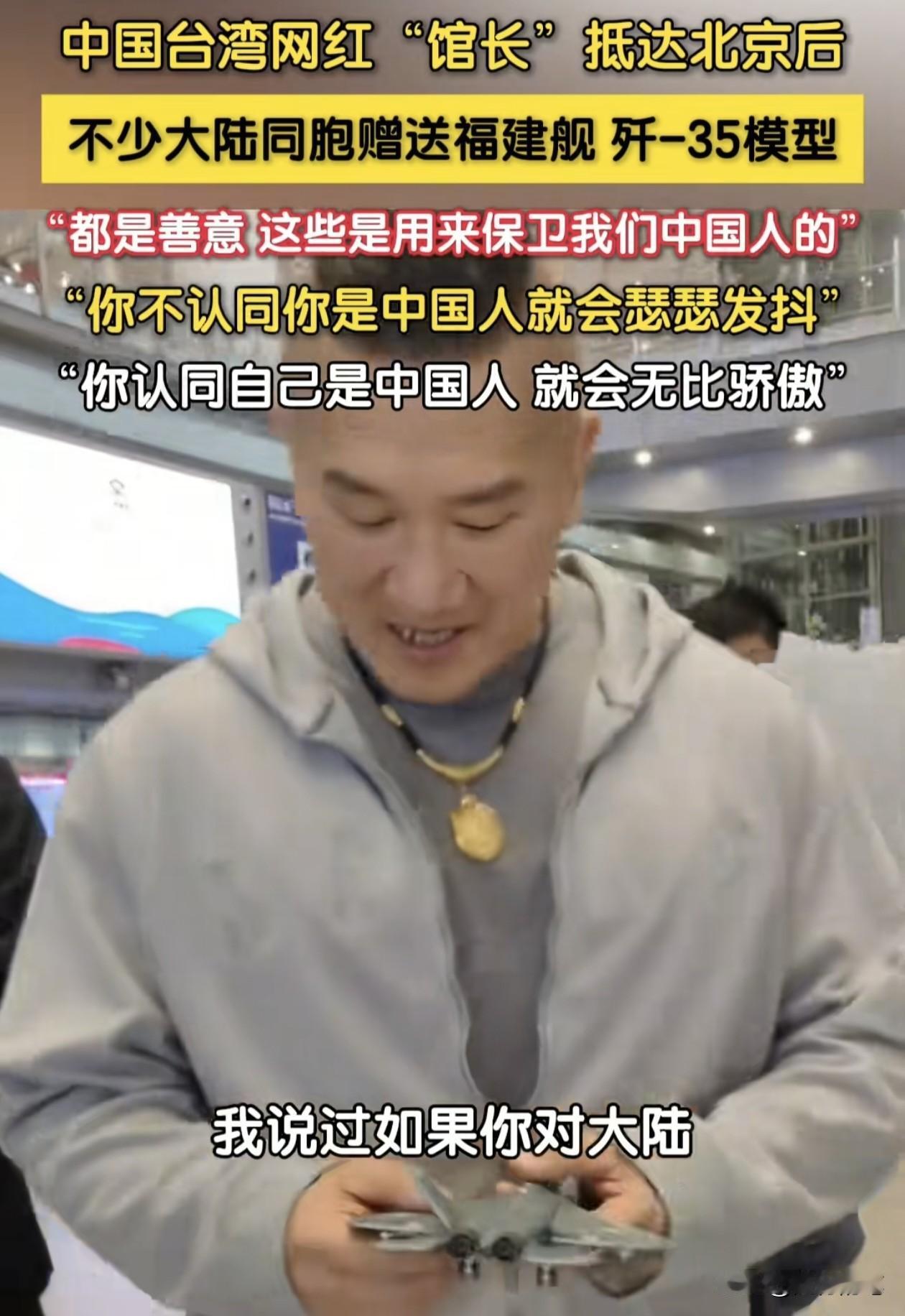 馆长赚大发了,北京粉丝太大方太有觉悟了。 从昨天一下飞机到今天第一天开始直播,馆长已经相继收到粉丝送的歼-35模型、福建舰模型和歼-16D模型。 馆长可能也没想到这次北京行居然收到了这么多装备模型,而且还是先进装备的模型。 果然是北京粉丝啊,这么多关心我国军事装备发展的,而且礼物非常适合又有心思,馆长作为当过兵的人,对军事装备肯定是爱不释手的,而且通过镜头直播,也让台湾同胞看看我国的装备发展,起到宣传作用,简直是一举两得。