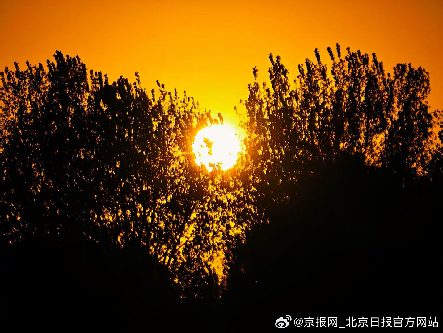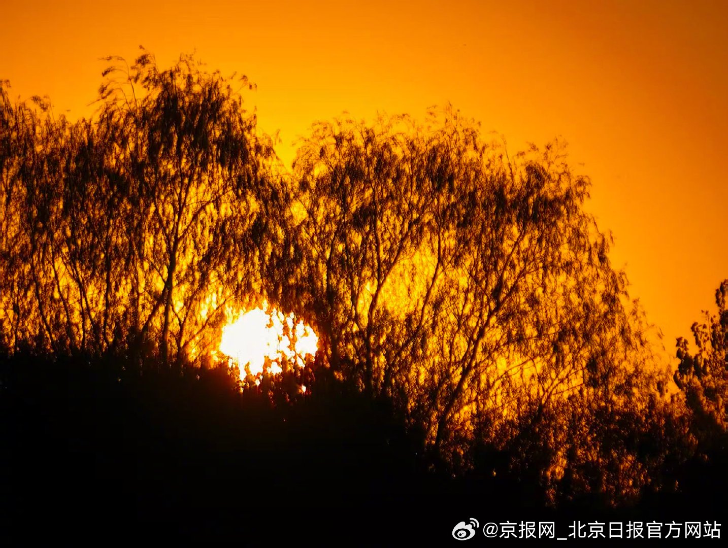 【活力!#北京落日有层能量罩# 】#北京橙子味晚霞告别周末# 10月26日傍晚,周末尾声,北京落日“降落”在树桠间,橙黄光斑透过枝叶,像罩上了一层能量罩,带着满满活力迎接新一周吧!#今天北京真好看#(作者 温红征 王建忠 武辉 张宏梅)
