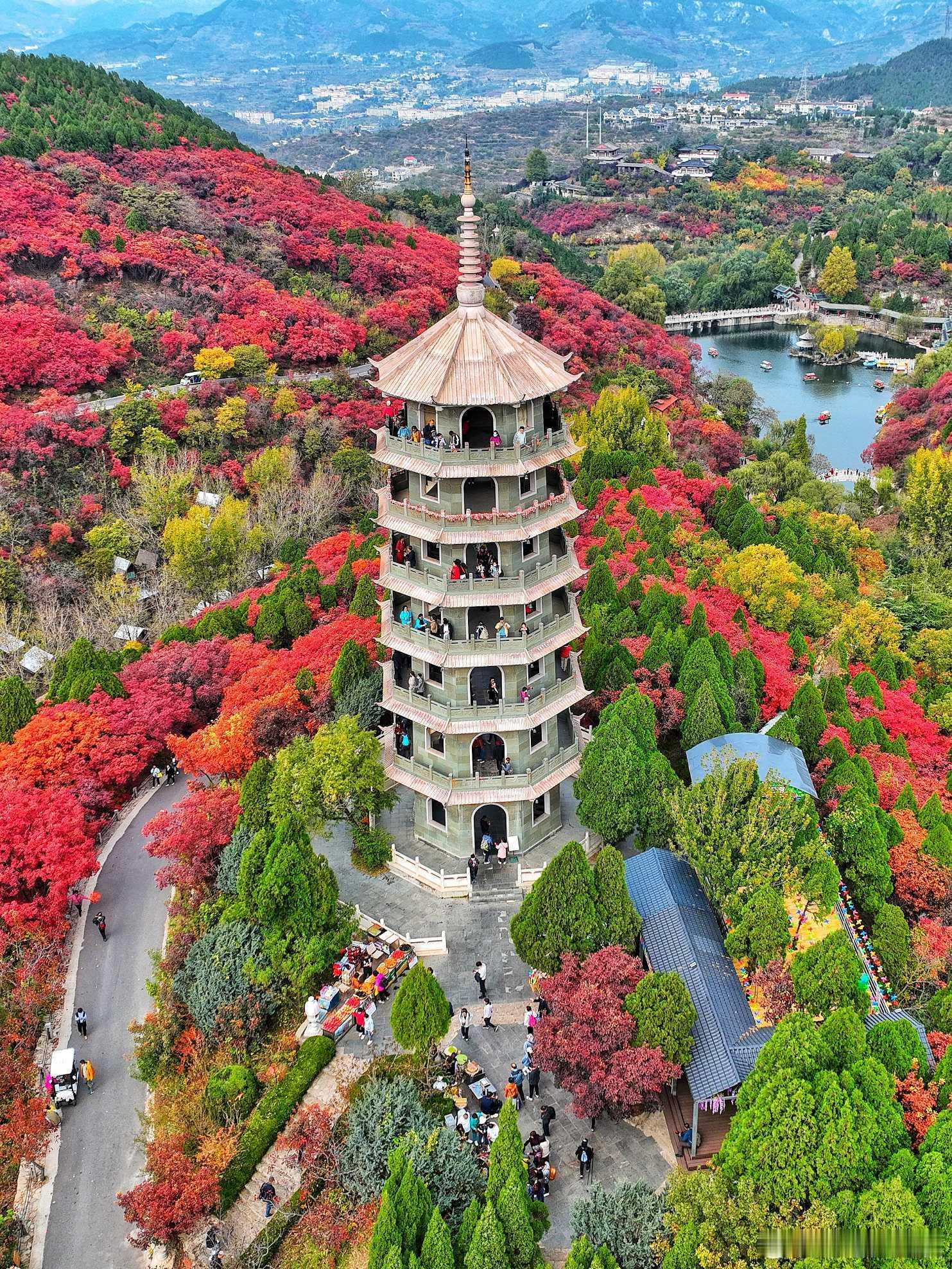对了,好像淄博的红叶柿岩旅游区也迎来了最佳观赏期,想看万亩红叶随风漫舞,想玩红叶间穿梭的玻璃水滑道。济南红叶谷也行,也是赏秋的好去处,据说济南穿汉服就能免费逛融创乐园!