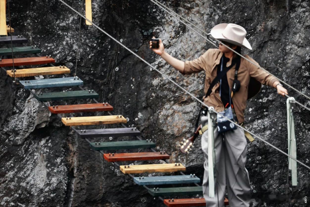 内娱胆大赛道又添一员猛将别人走吊桥:双手紧握 于适走吊桥:旋转开麦这哥的胆子是租