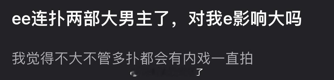 成毅连扑两部大男主了,这对成毅影响大吗?